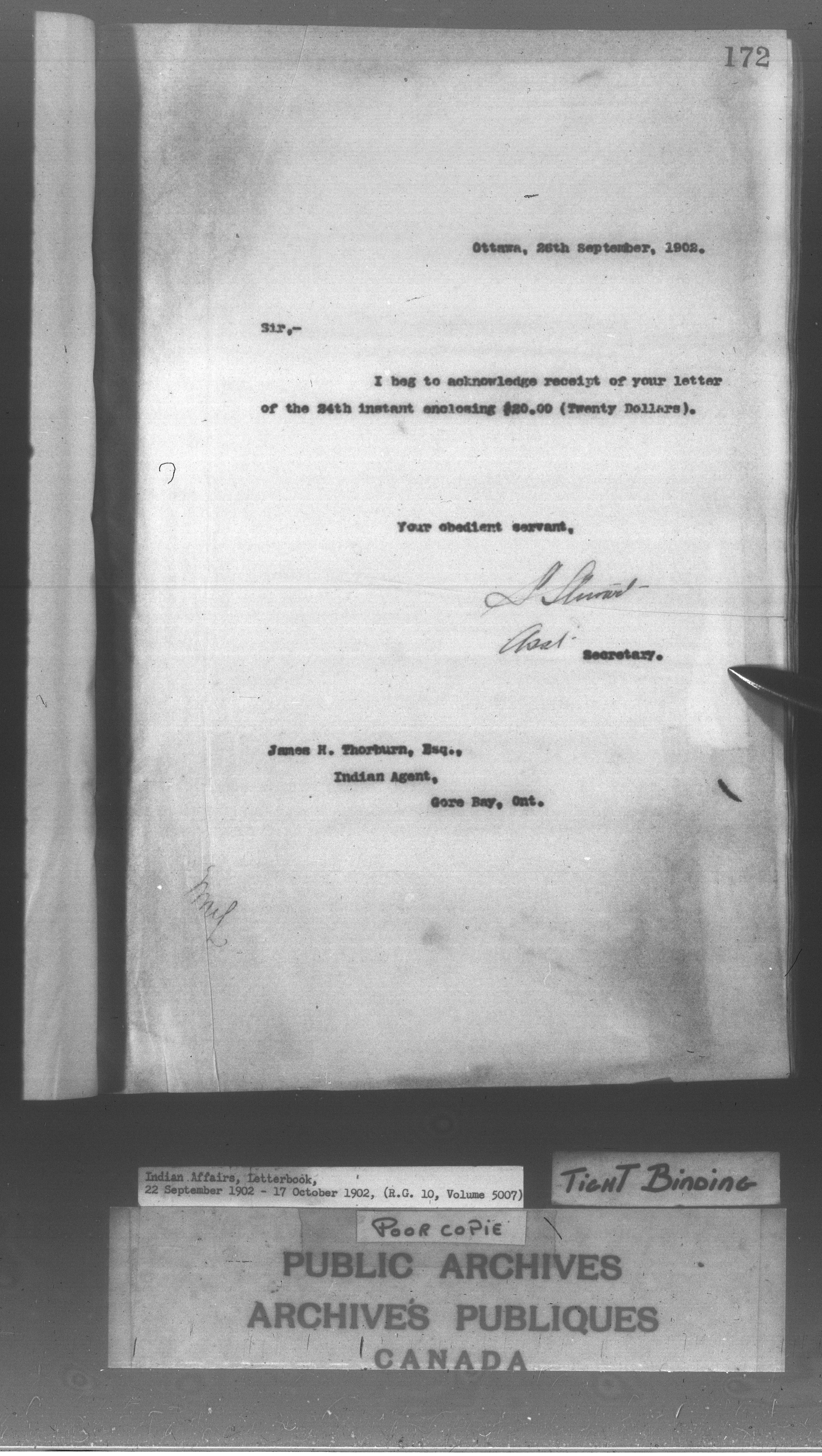 Department of Indian Affairs : Letterbooks of out-going correspondence relating to the administration of Indian Affairs in both eastern and western Canada, 1871-1920 - 8564