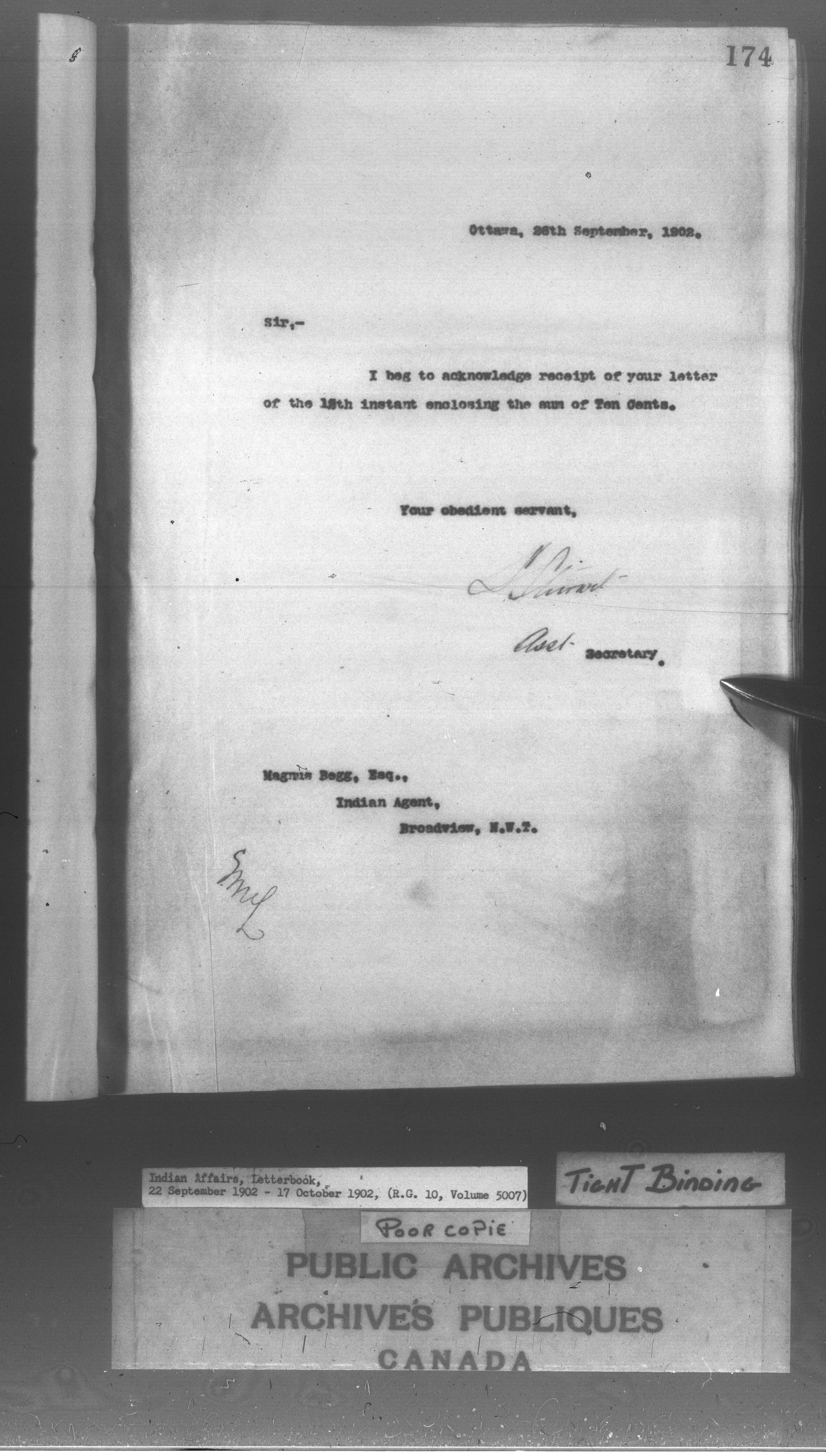 Department of Indian Affairs : Letterbooks of out-going correspondence relating to the administration of Indian Affairs in both eastern and western Canada, 1871-1920 - 8564