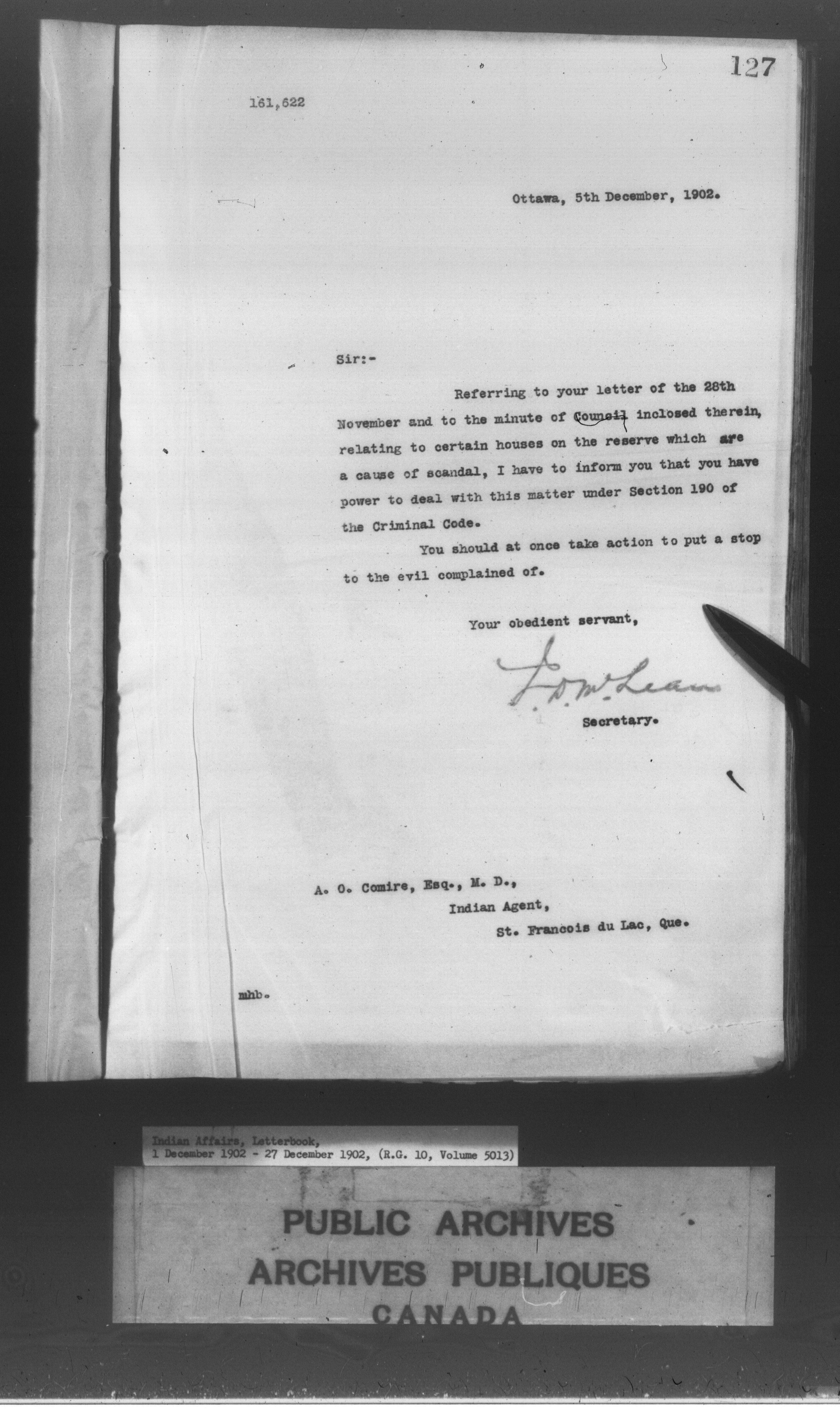 Department of Indian Affairs : Letterbooks of out-going correspondence relating to the administration of Indian Affairs in both eastern and western Canada, 1871-1920 - 8567