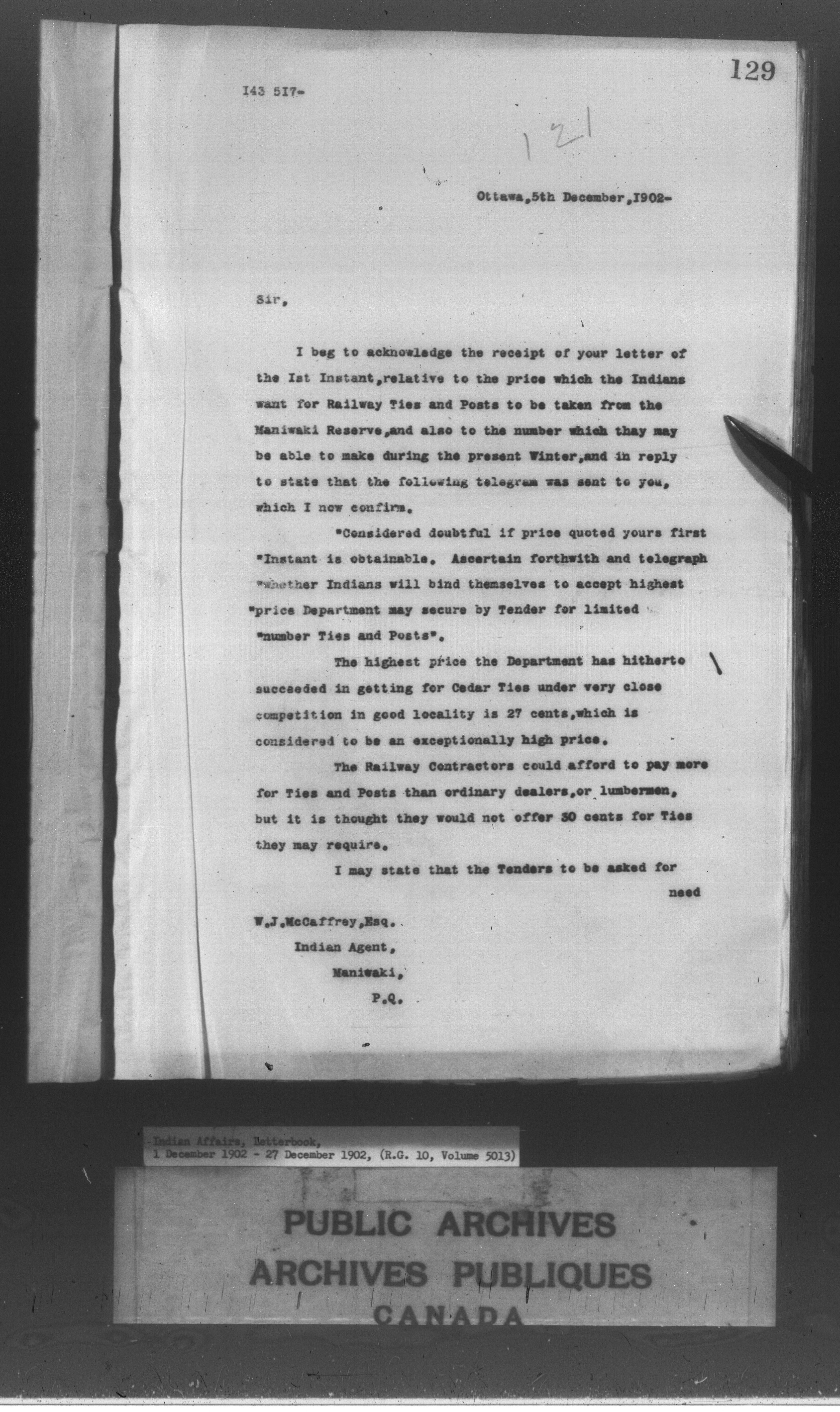 Department of Indian Affairs : Departmental letterbooks : C-8567