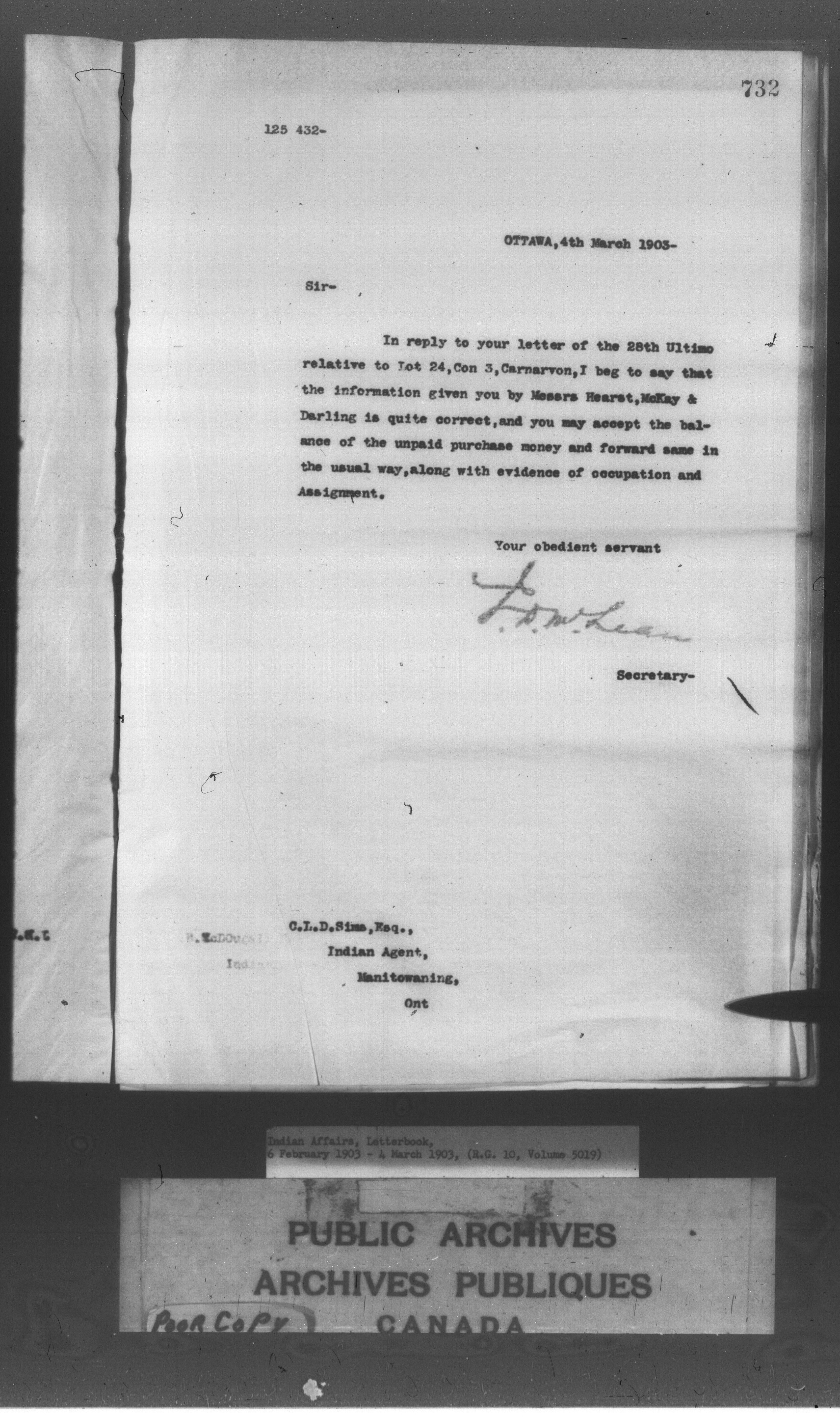 Department of Indian Affairs : Letterbooks of out-going correspondence relating to the administration of Indian Affairs in both eastern and western Canada, 1871-1920 - 8569