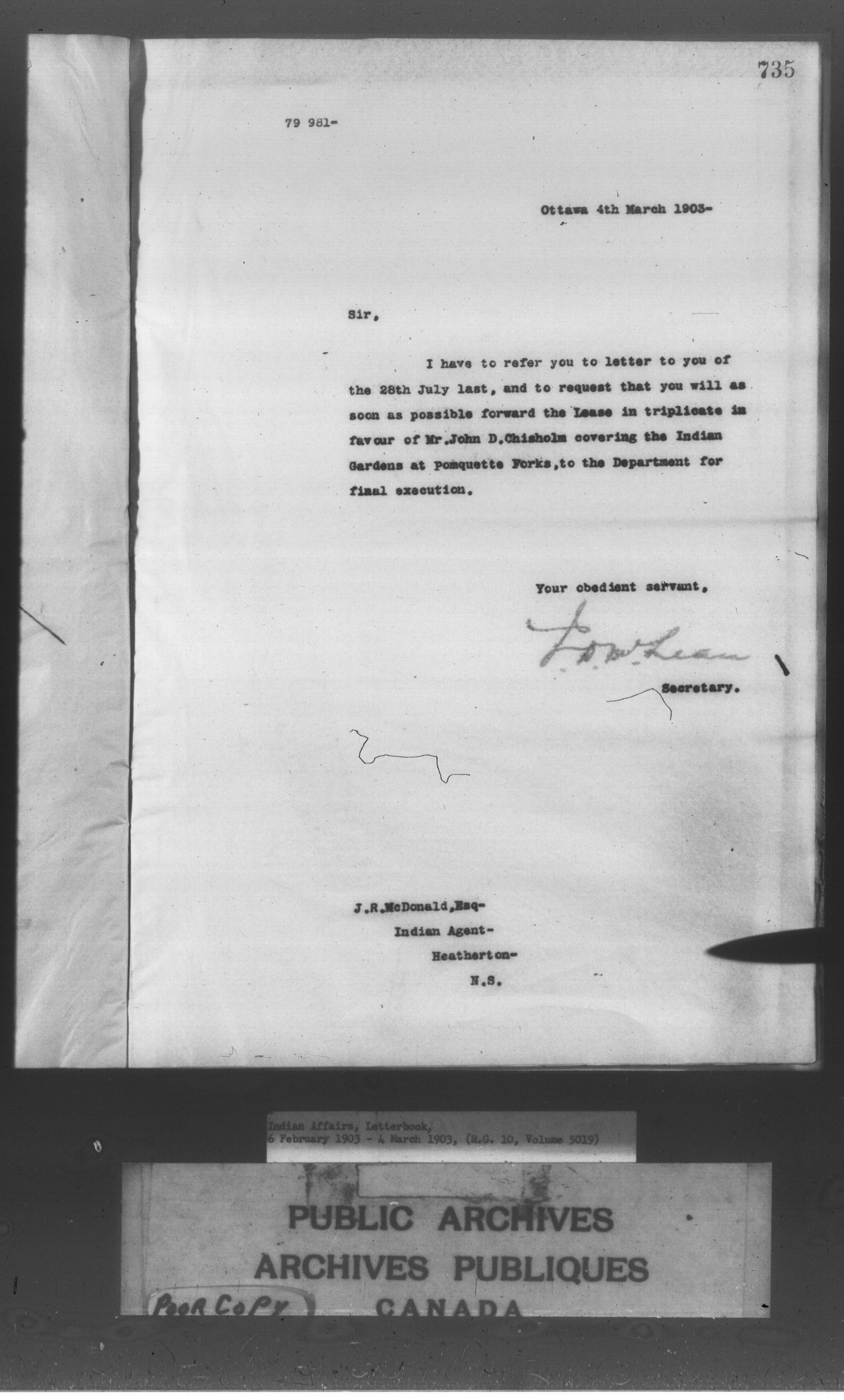 Department of Indian Affairs : Letterbooks of out-going correspondence relating to the administration of Indian Affairs in both eastern and western Canada, 1871-1920 - 8569