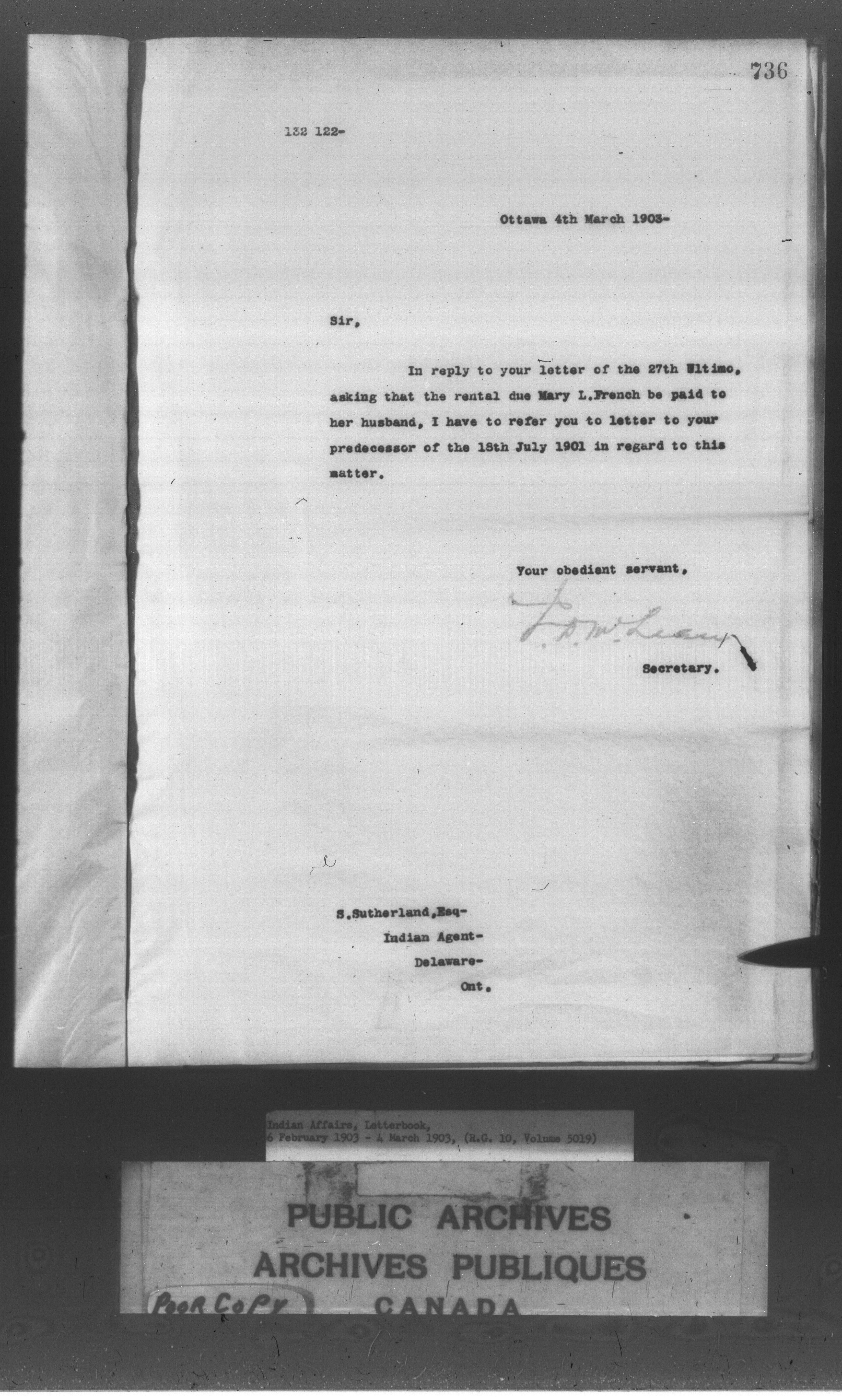 Department of Indian Affairs : Letterbooks of out-going correspondence relating to the administration of Indian Affairs in both eastern and western Canada, 1871-1920 - 8569