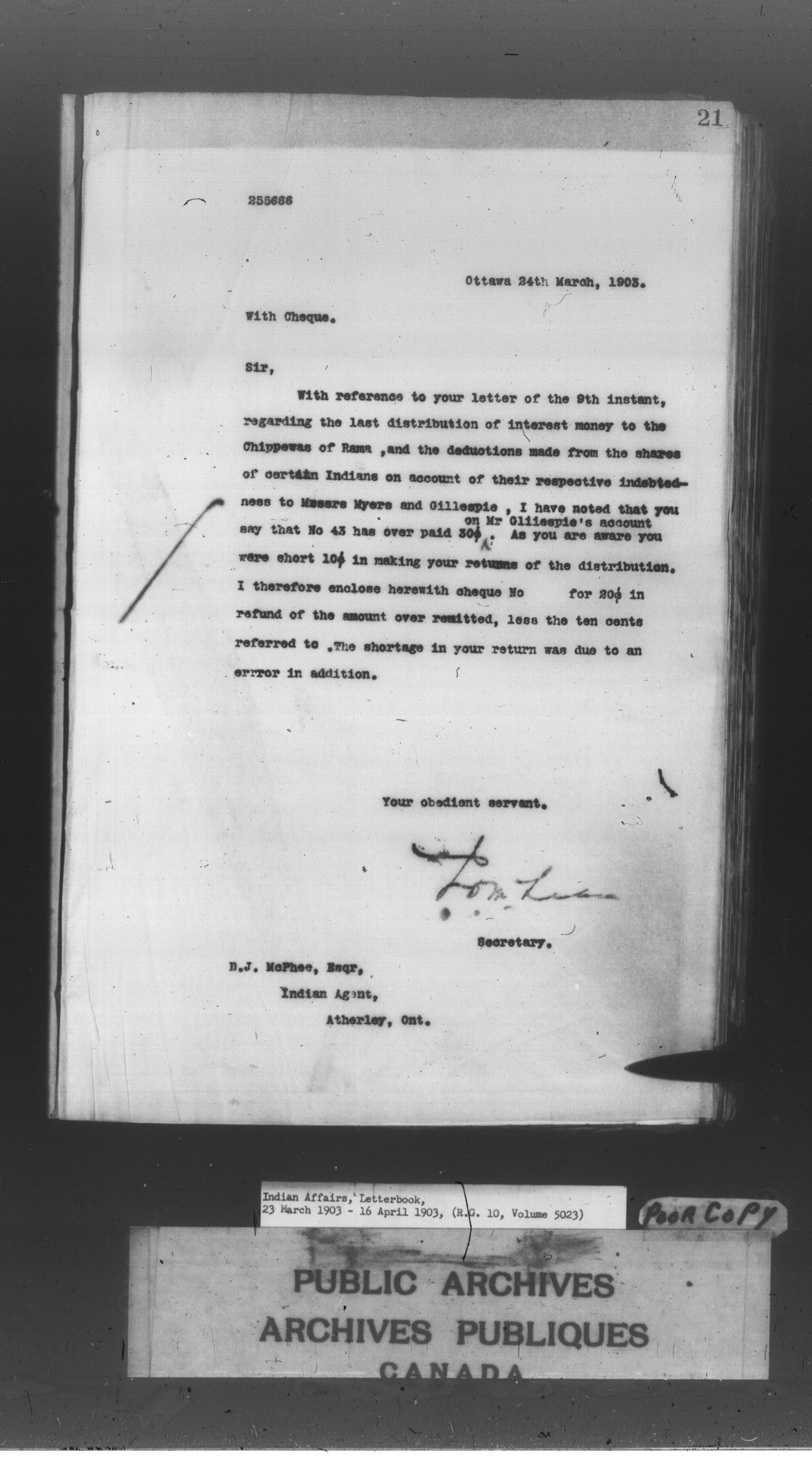 Department of Indian Affairs : Letterbooks of out-going correspondence relating to the administration of Indian Affairs in both eastern and western Canada, 1871-1920 - 8570