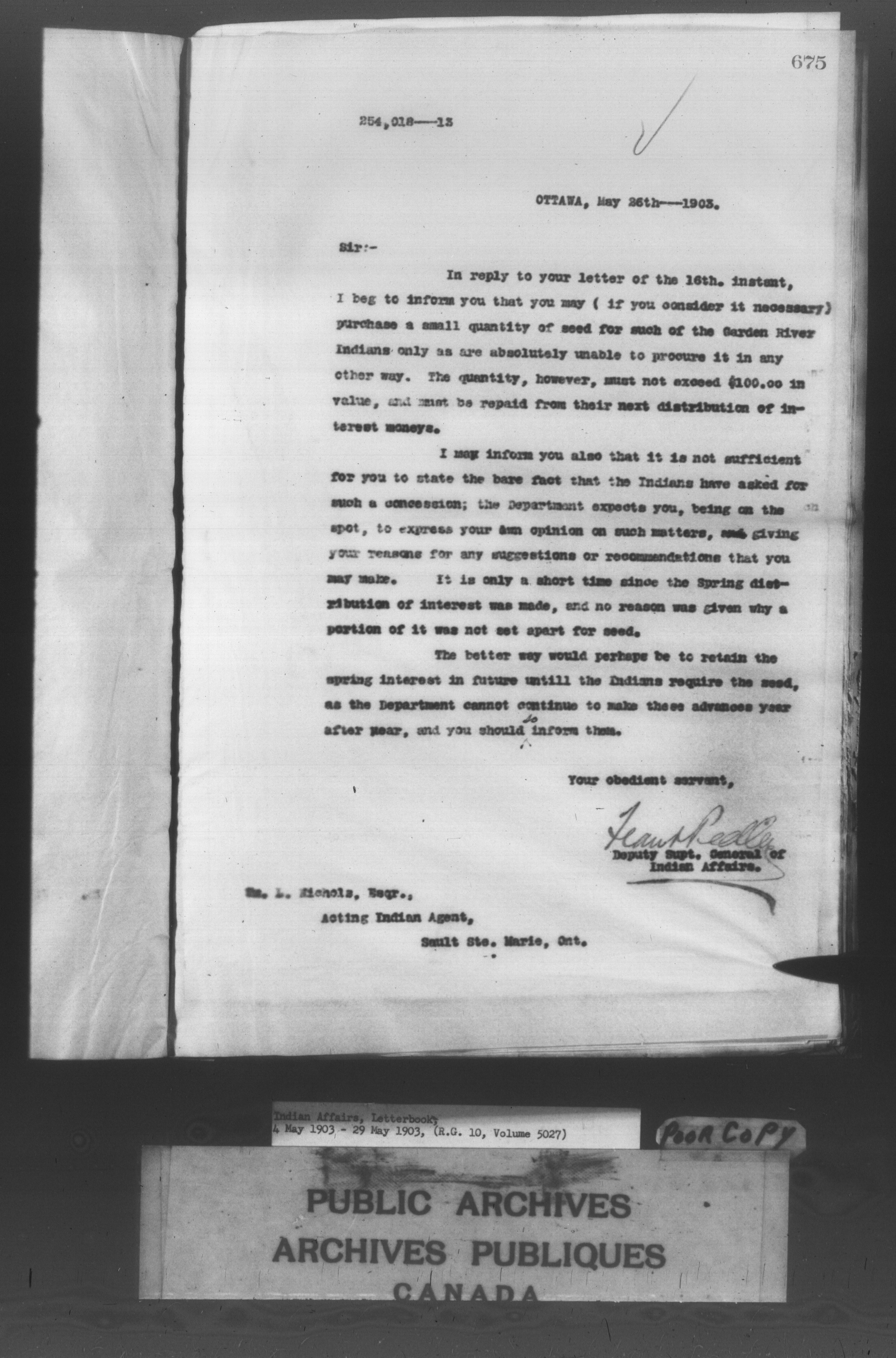 Department of Indian Affairs : Departmental letterbooks : C-8572