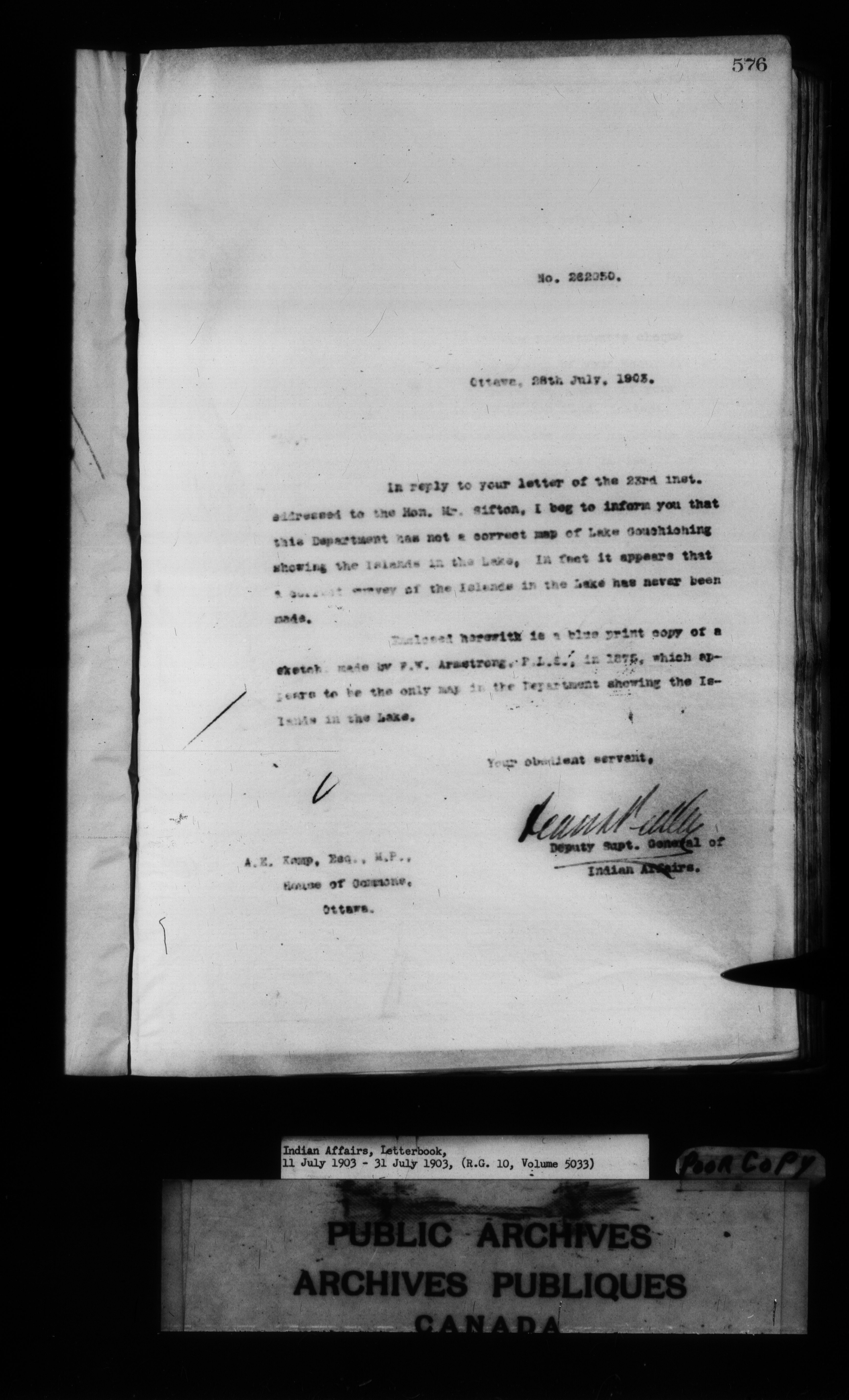 Department of Indian Affairs : Letterbooks of out-going correspondence relating to the administration of Indian Affairs in both eastern and western Canada, 1871-1920 - 8575