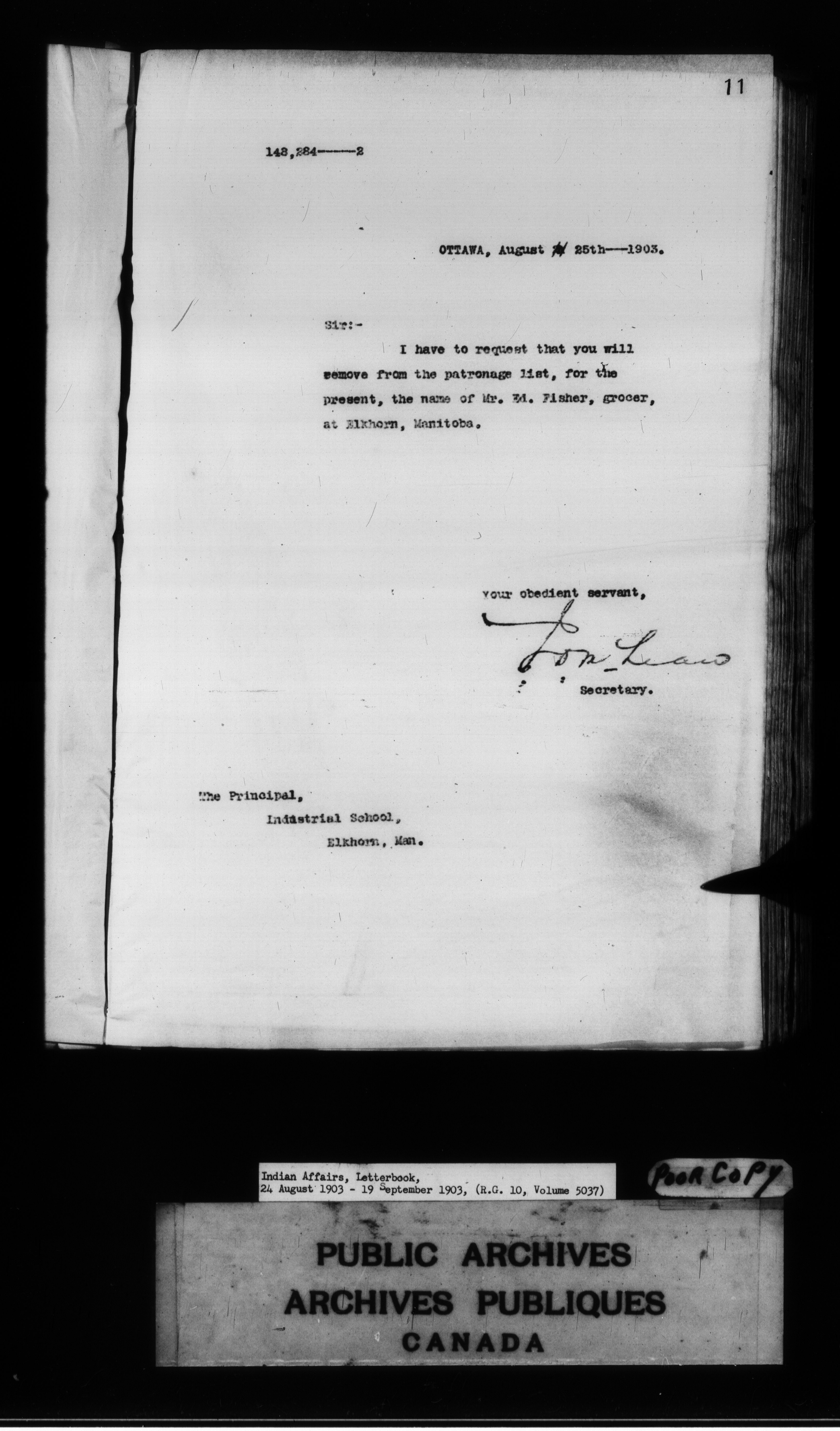 Department of Indian Affairs : Letterbooks of out-going correspondence relating to the administration of Indian Affairs in both eastern and western Canada, 1871-1920 - 8576