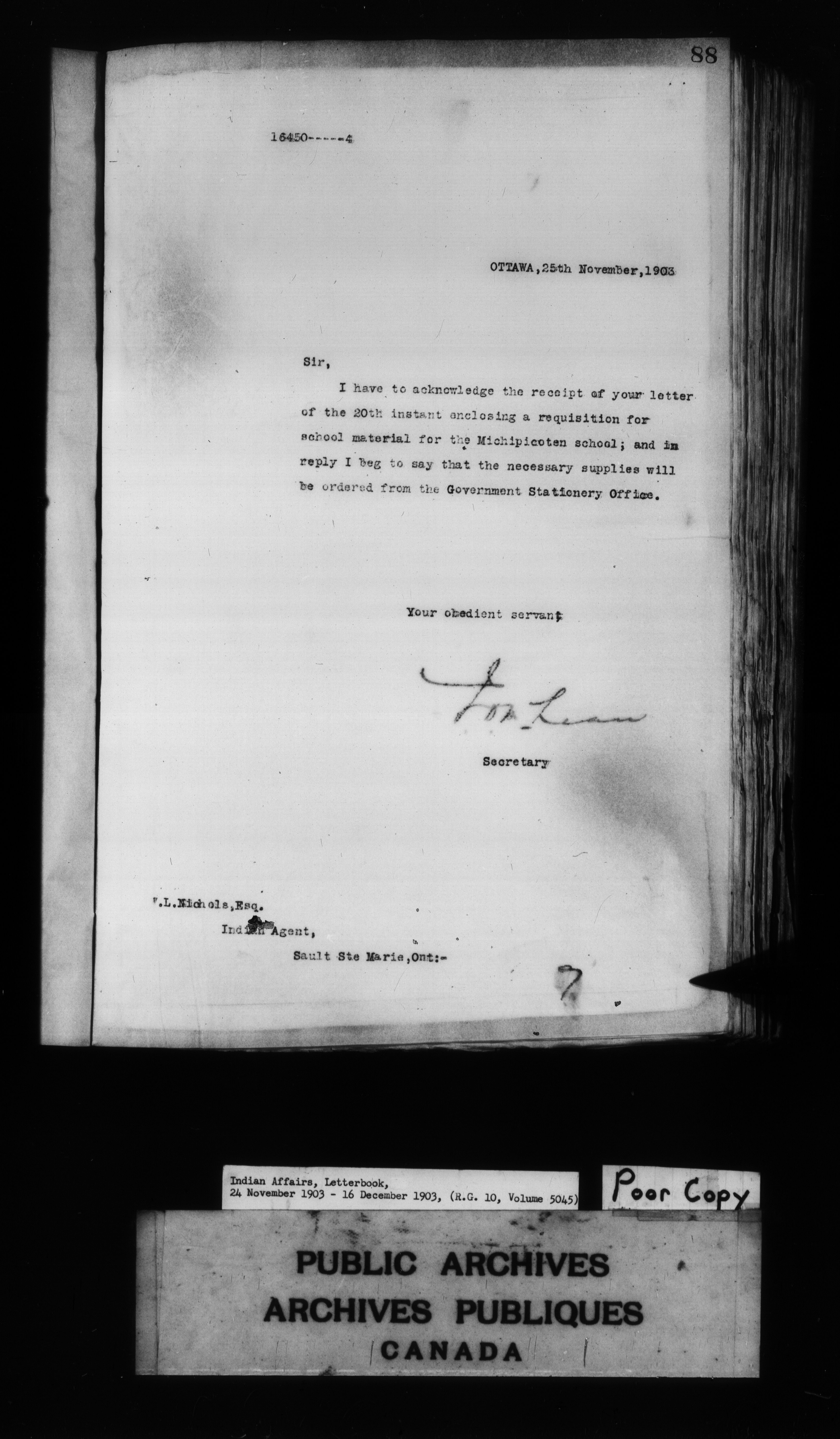Department of Indian Affairs : Letterbooks of out-going correspondence relating to the administration of Indian Affairs in both eastern and western Canada, 1871-1920 - 8578
