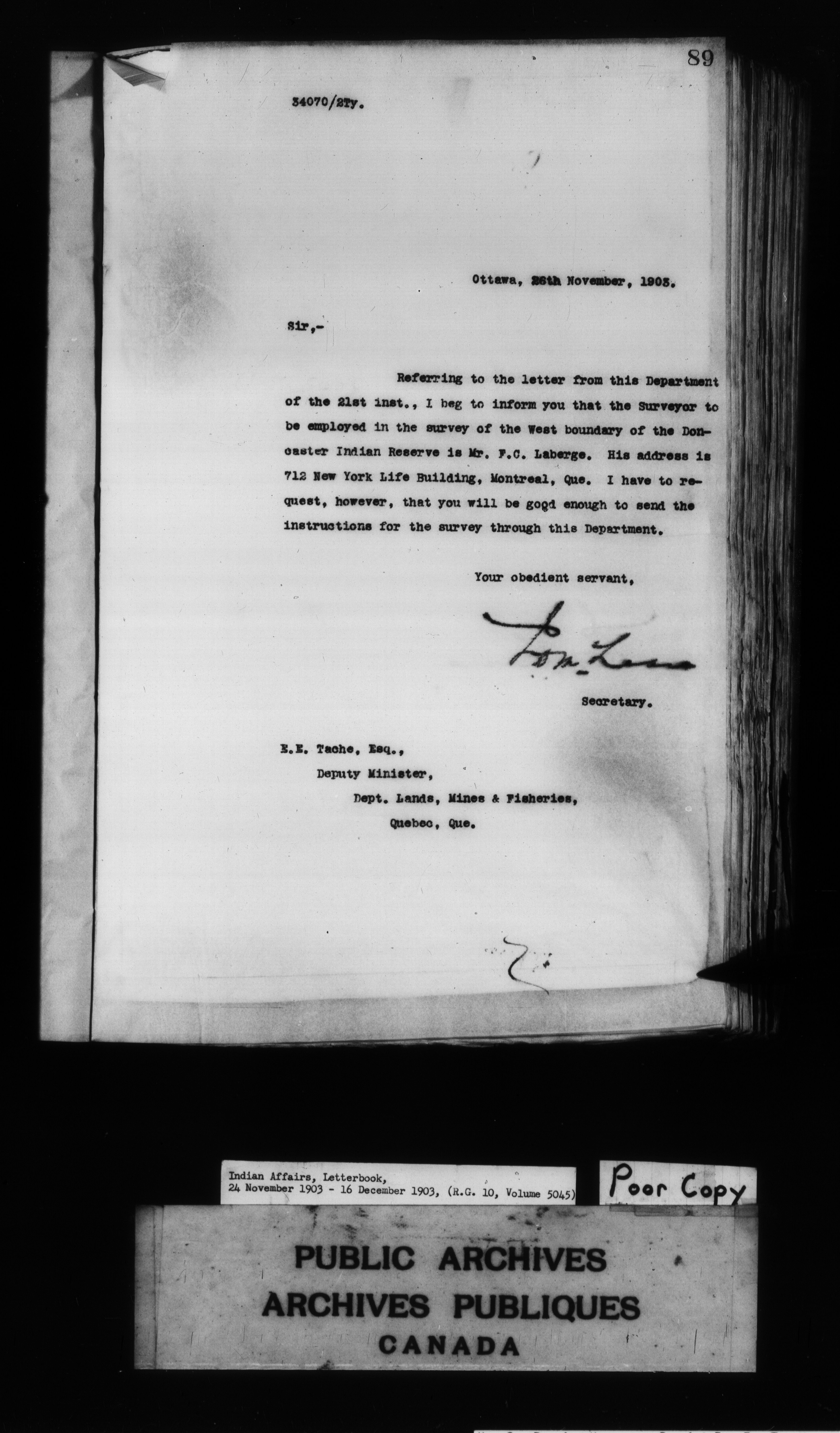 Department of Indian Affairs : Letterbooks of out-going correspondence relating to the administration of Indian Affairs in both eastern and western Canada, 1871-1920 - 8578