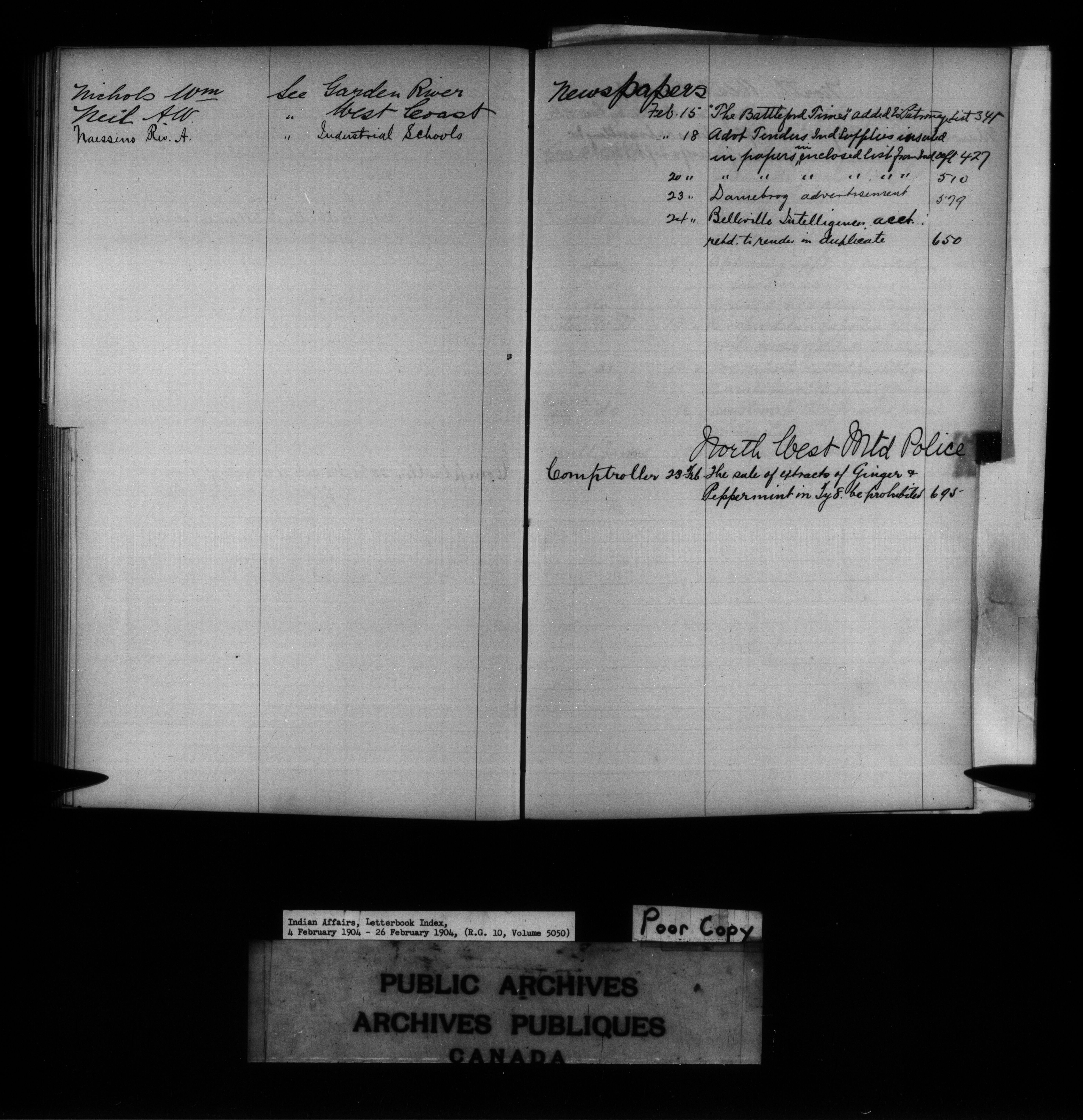 Department of Indian Affairs : Letterbooks of out-going correspondence relating to the administration of Indian Affairs in both eastern and western Canada, 1871-1920 - 8580