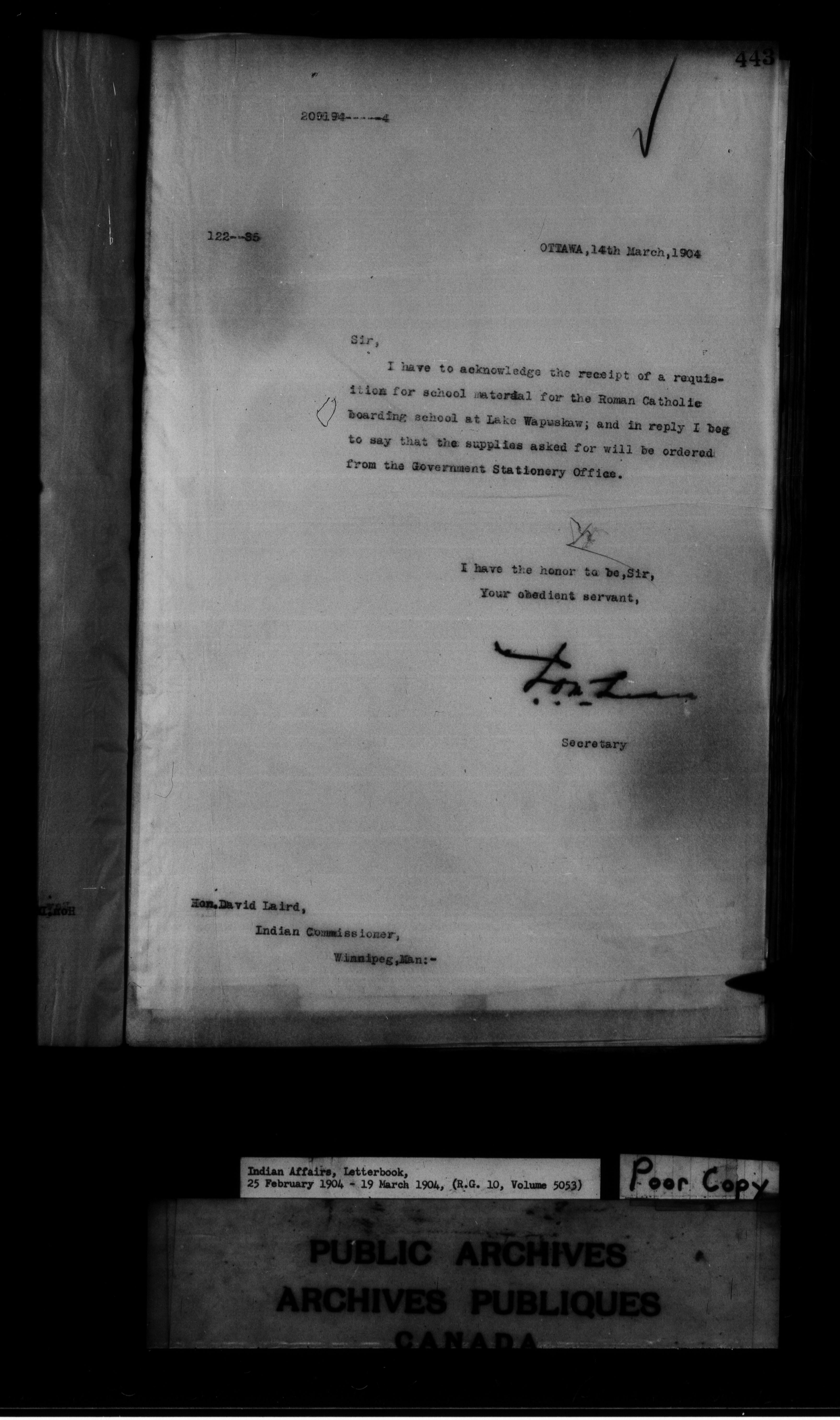 Department of Indian Affairs : Letterbooks of out-going correspondence relating to the administration of Indian Affairs in both eastern and western Canada, 1871-1920 - 8582
