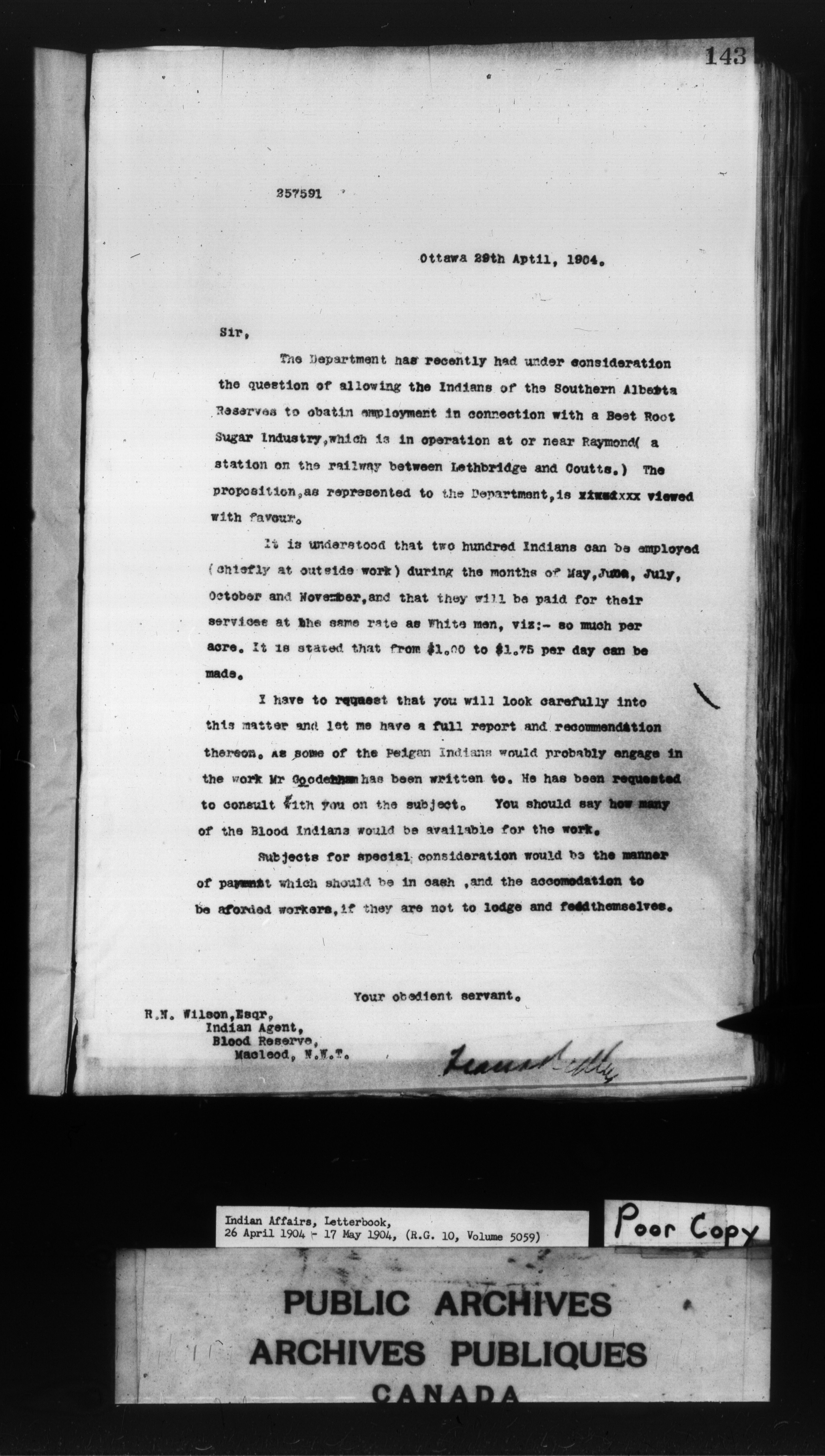 Department of Indian Affairs : Letterbooks of out-going correspondence relating to the administration of Indian Affairs in both eastern and western Canada, 1871-1920 - 8584