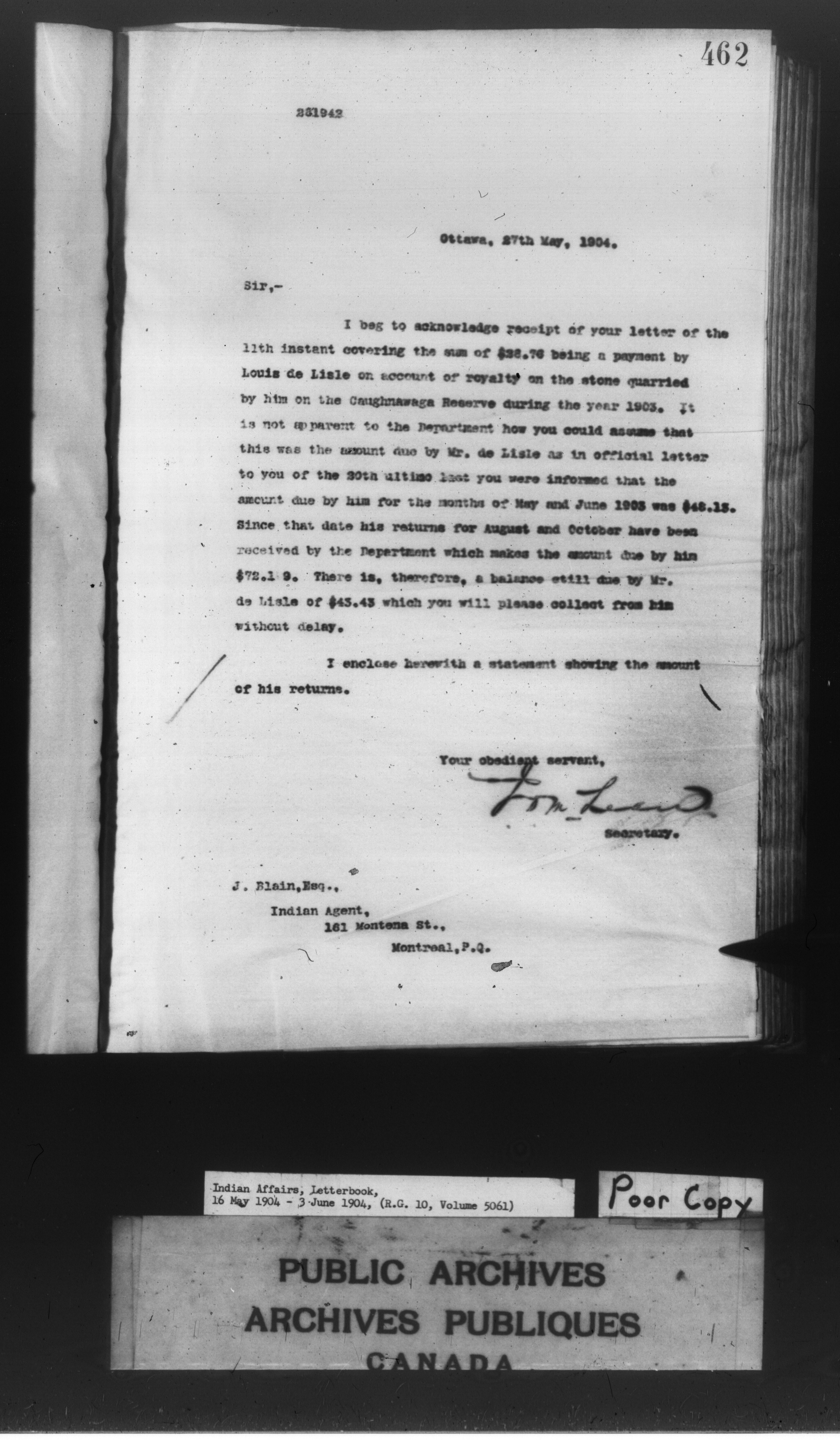 Department of Indian Affairs : Letterbooks of out-going correspondence relating to the administration of Indian Affairs in both eastern and western Canada, 1871-1920 - 8585