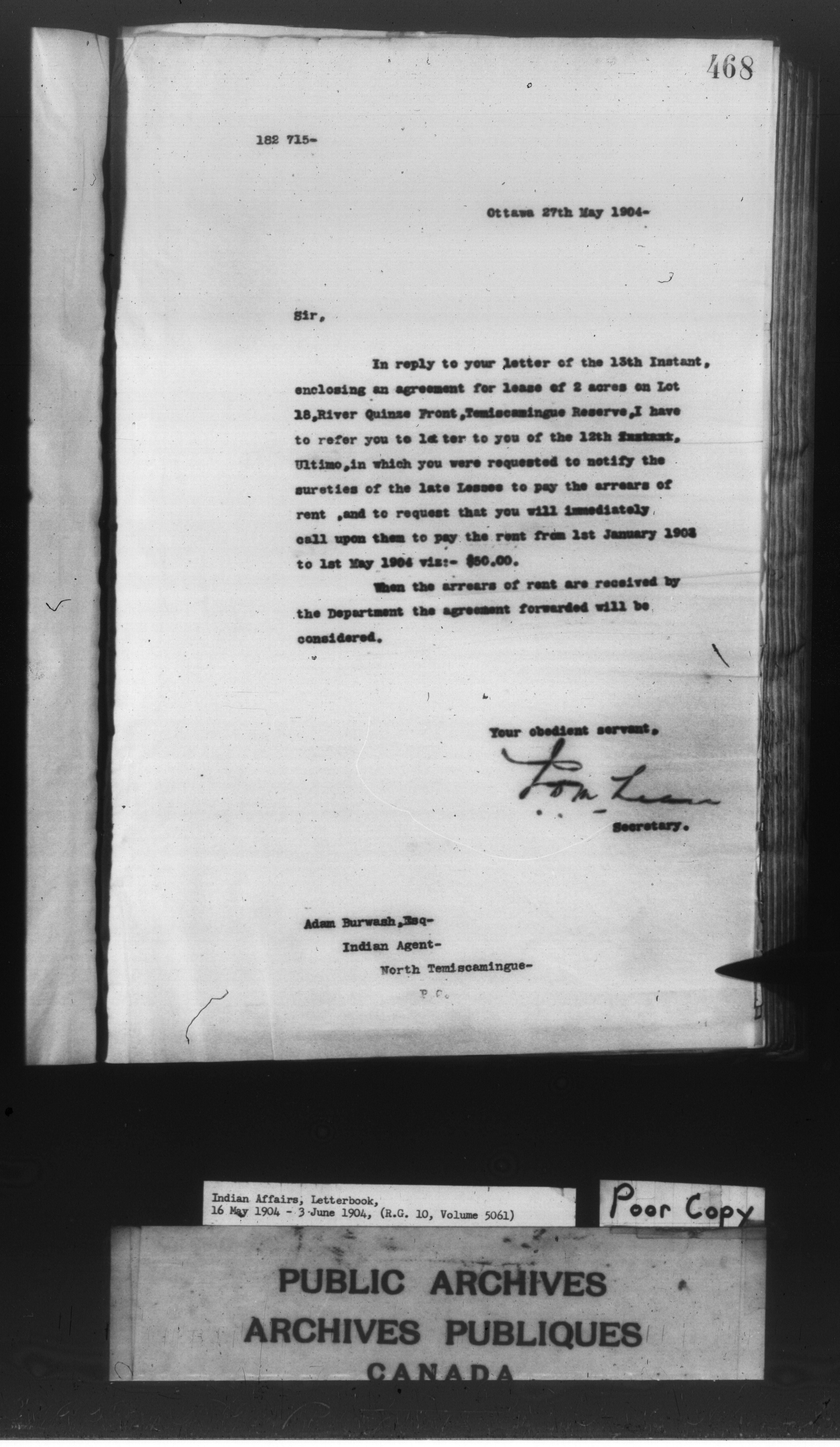 Department of Indian Affairs : Letterbooks of out-going correspondence relating to the administration of Indian Affairs in both eastern and western Canada, 1871-1920 - 8585