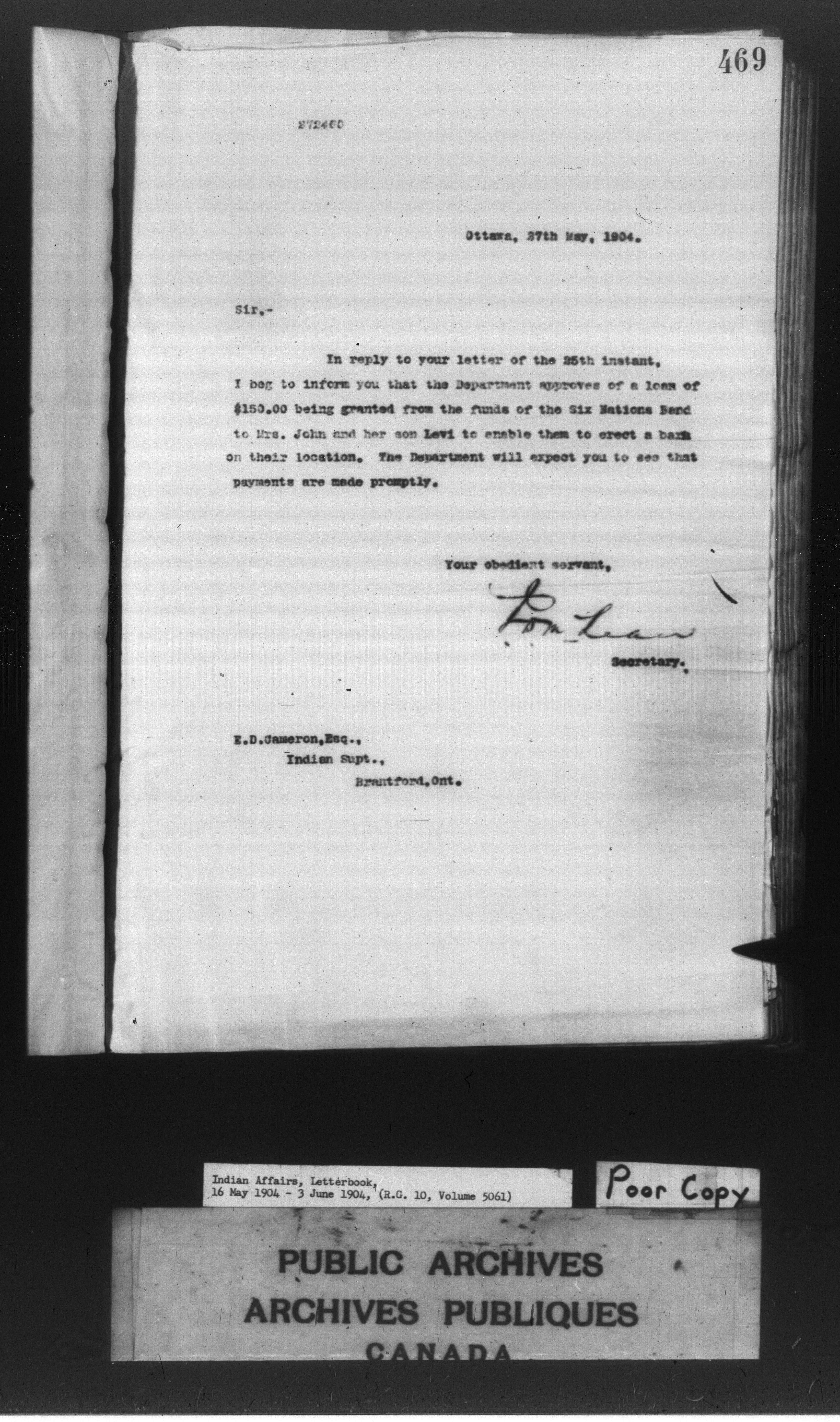 Department of Indian Affairs : Letterbooks of out-going correspondence relating to the administration of Indian Affairs in both eastern and western Canada, 1871-1920 - 8585