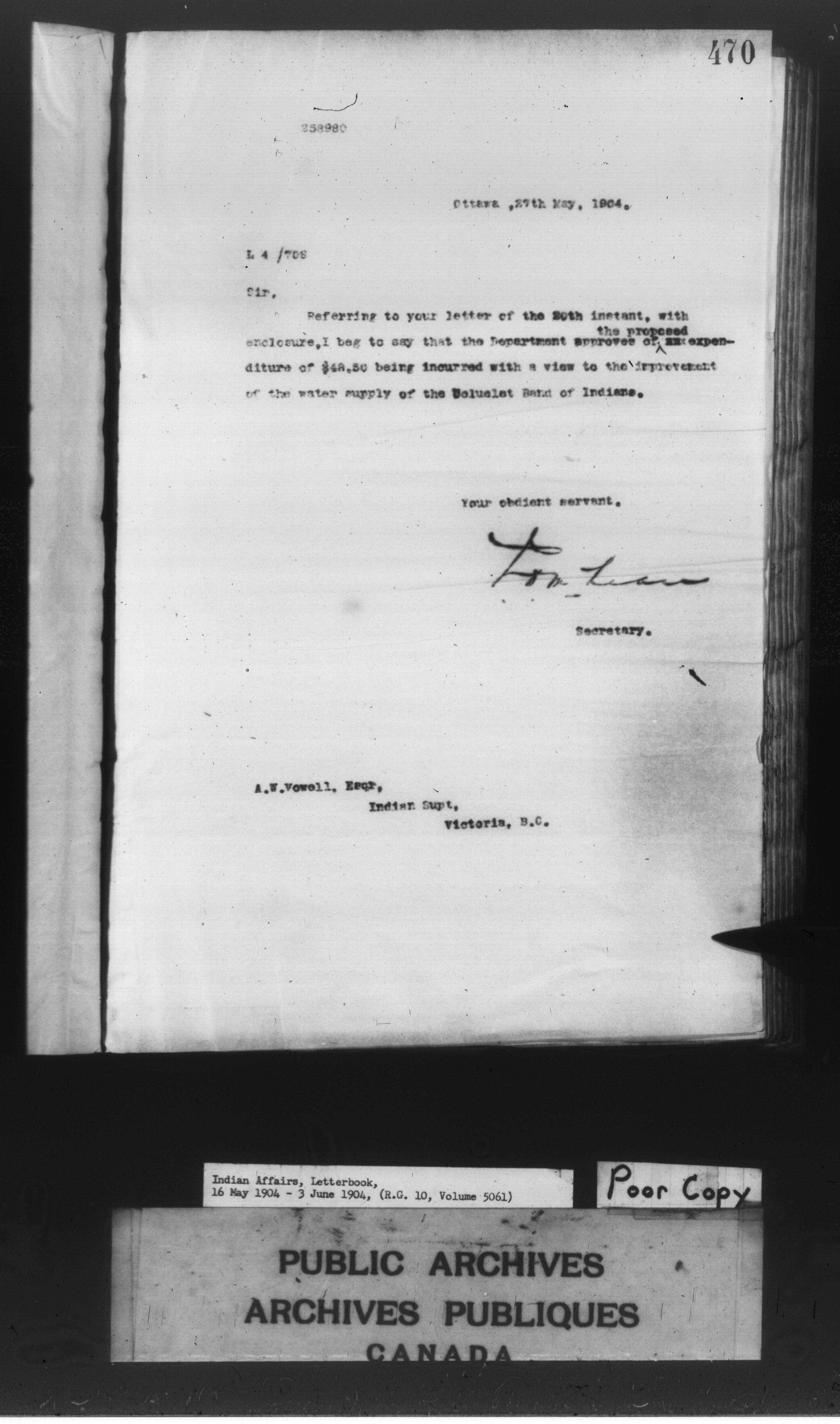 Department of Indian Affairs : Letterbooks of out-going correspondence relating to the administration of Indian Affairs in both eastern and western Canada, 1871-1920 - 8585