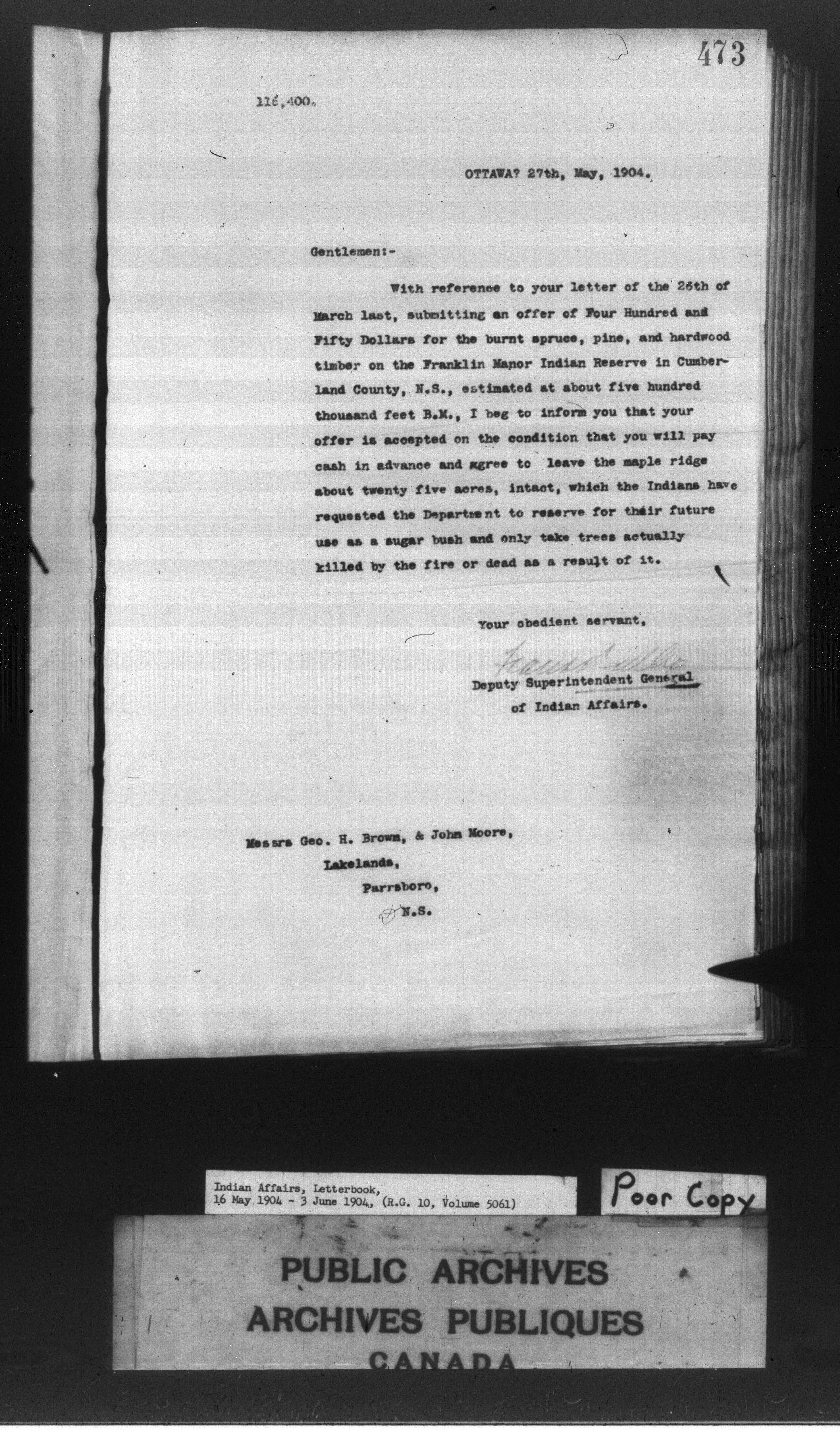 Department of Indian Affairs : Letterbooks of out-going correspondence relating to the administration of Indian Affairs in both eastern and western Canada, 1871-1920 - 8585
