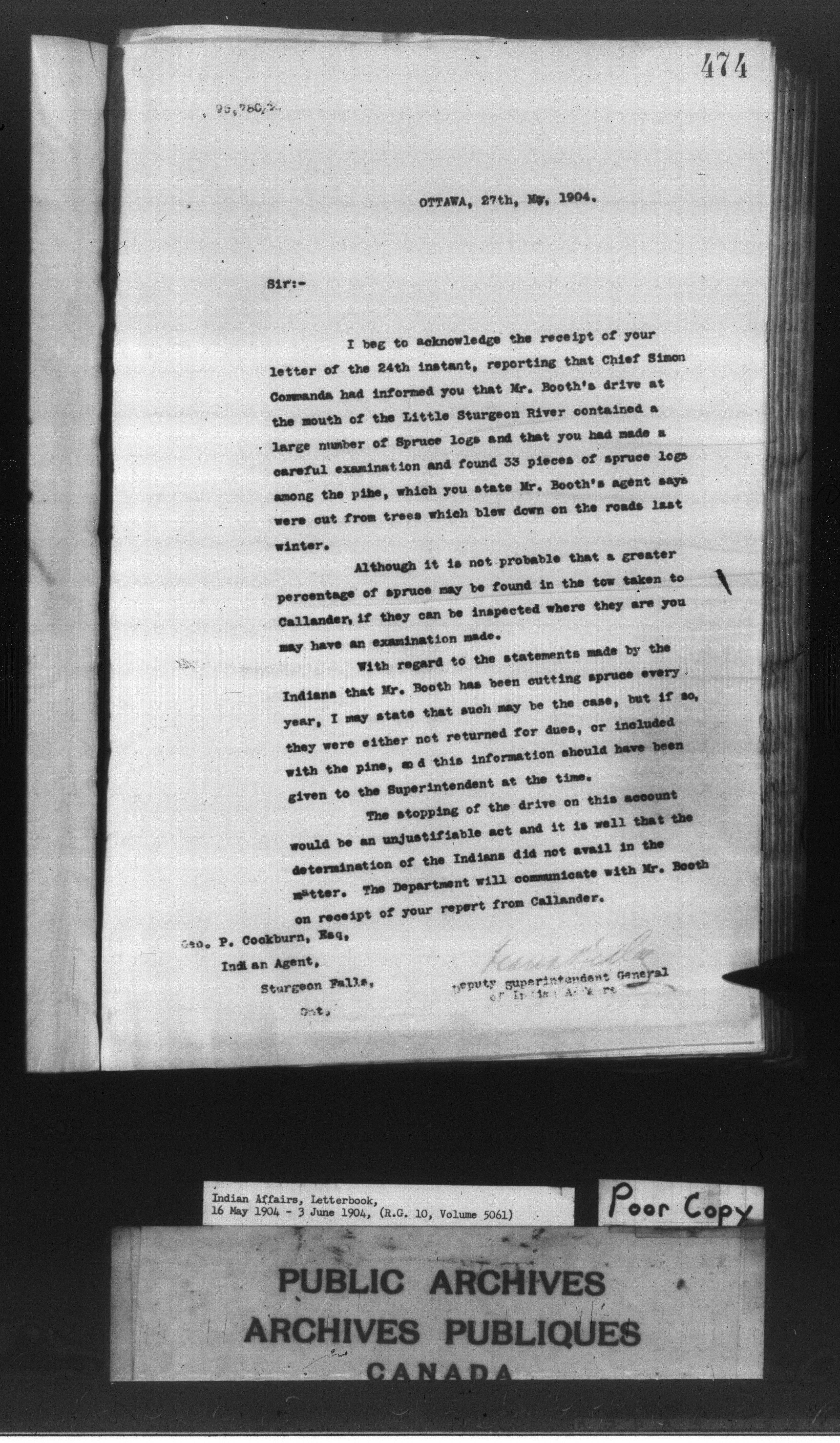 Department of Indian Affairs : Letterbooks of out-going correspondence relating to the administration of Indian Affairs in both eastern and western Canada, 1871-1920 - 8585