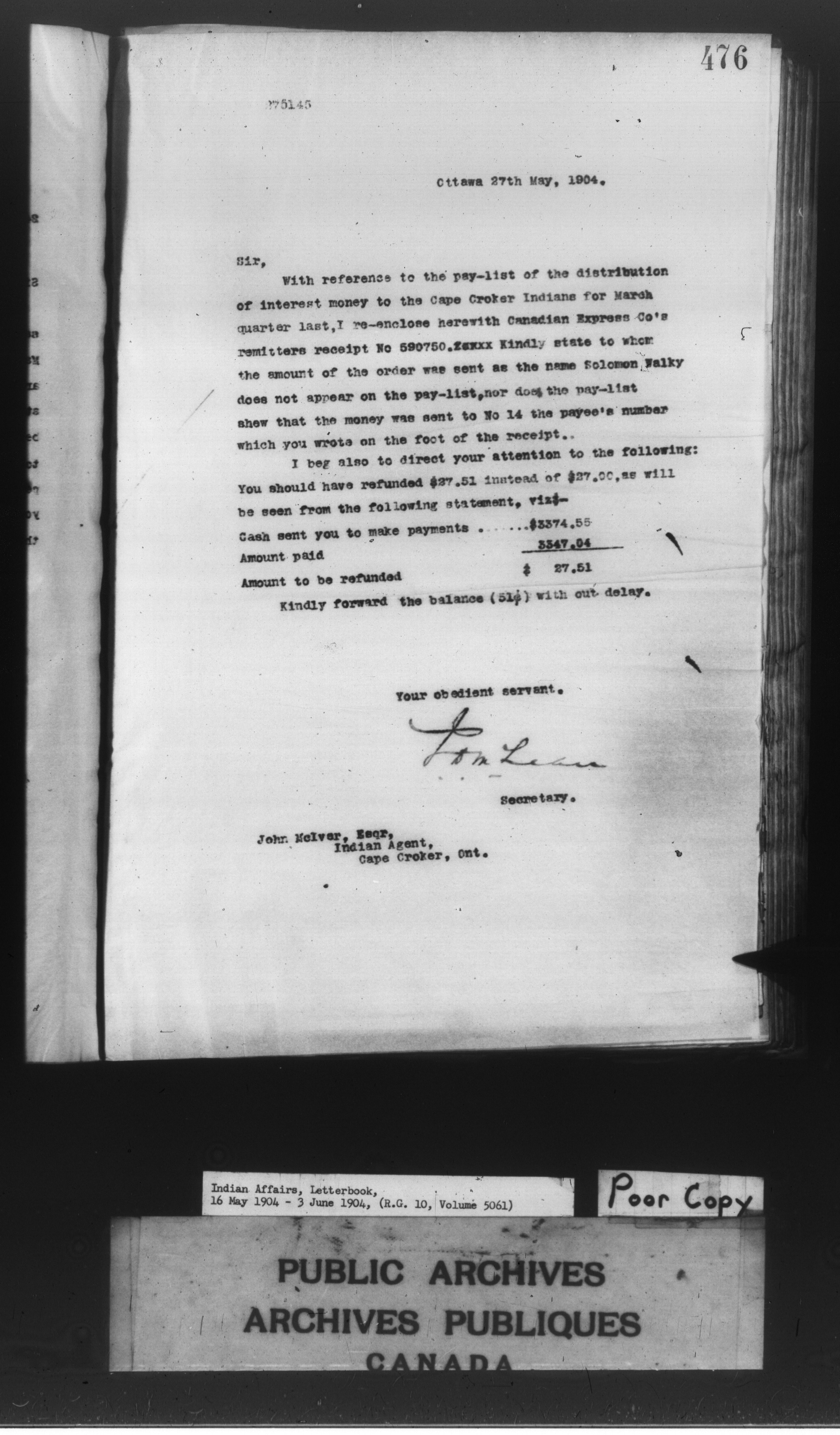 Department of Indian Affairs : Letterbooks of out-going correspondence relating to the administration of Indian Affairs in both eastern and western Canada, 1871-1920 - 8585