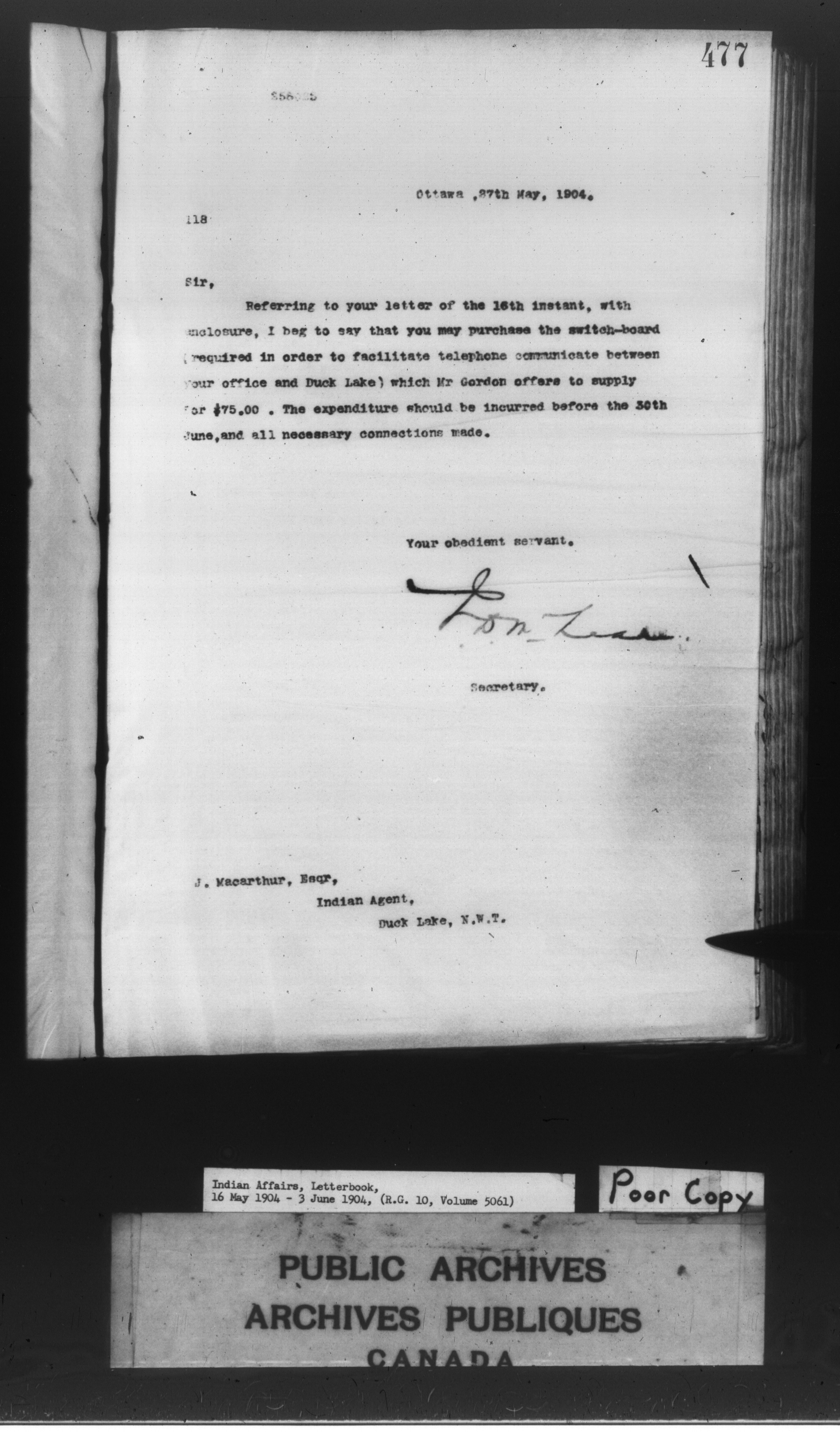 Department of Indian Affairs : Letterbooks of out-going correspondence relating to the administration of Indian Affairs in both eastern and western Canada, 1871-1920 - 8585