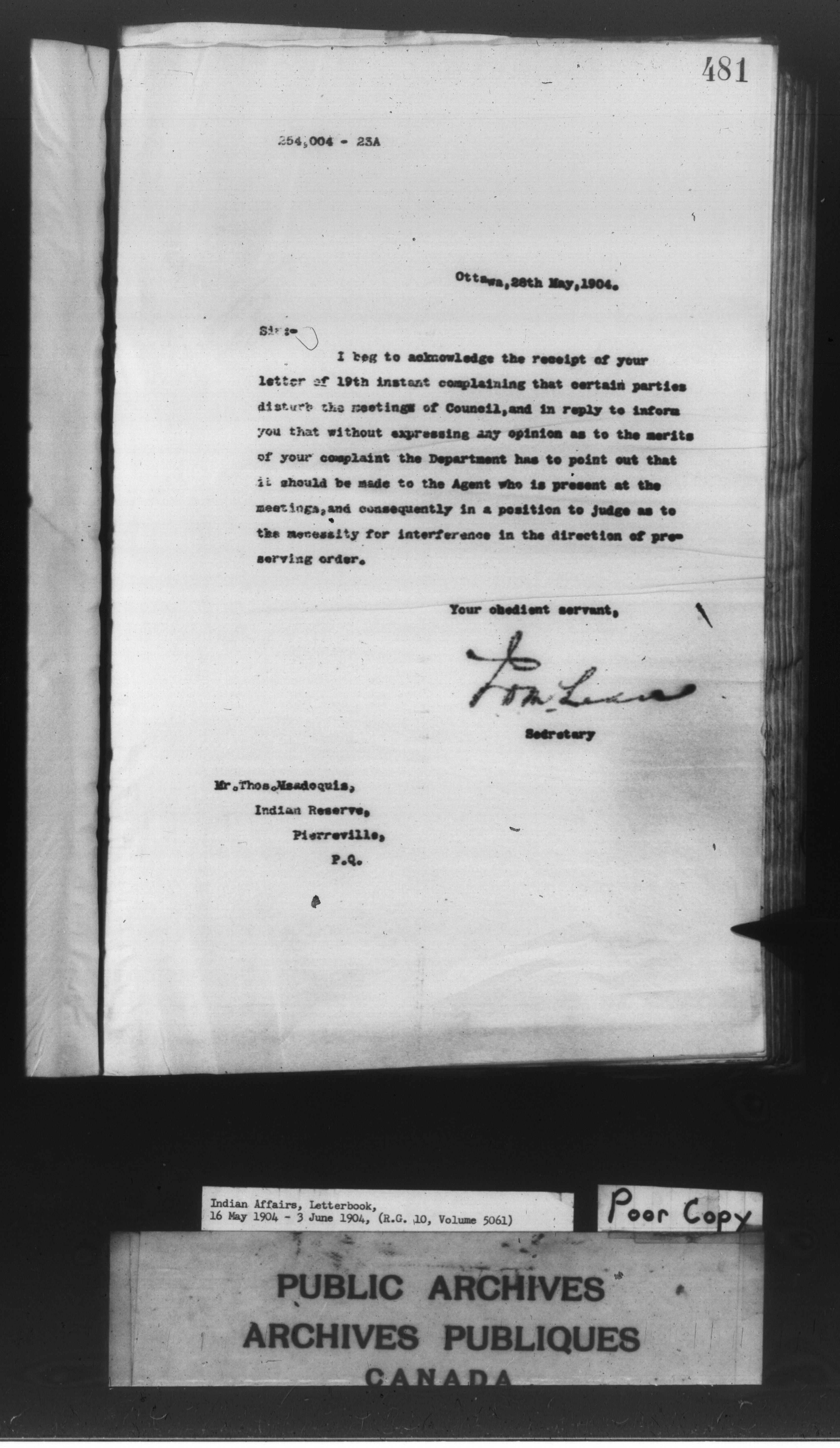 Department of Indian Affairs : Letterbooks of out-going correspondence relating to the administration of Indian Affairs in both eastern and western Canada, 1871-1920 - 8585