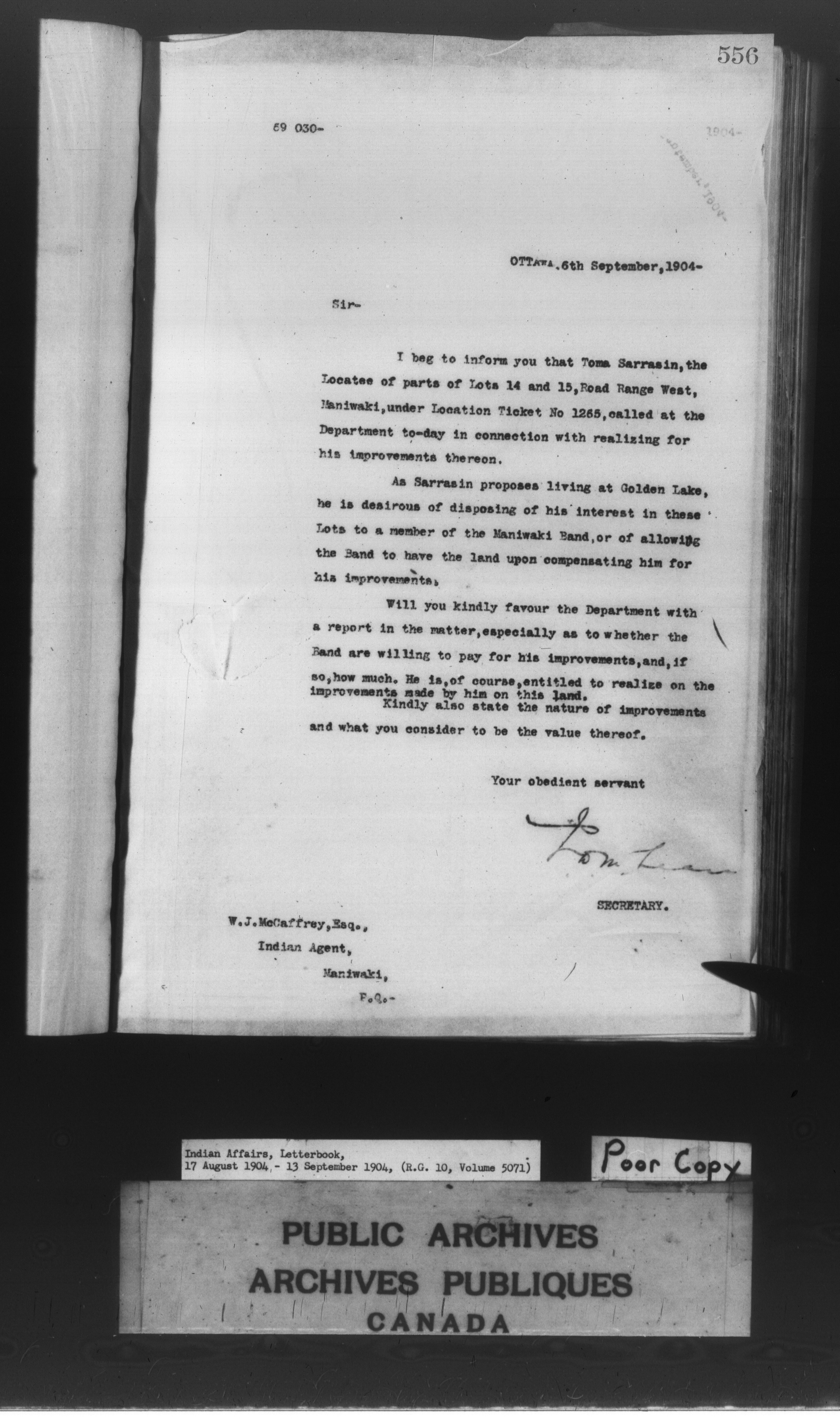 Department of Indian Affairs : Letterbooks of out-going correspondence relating to the administration of Indian Affairs in both eastern and western Canada, 1871-1920 - 8588