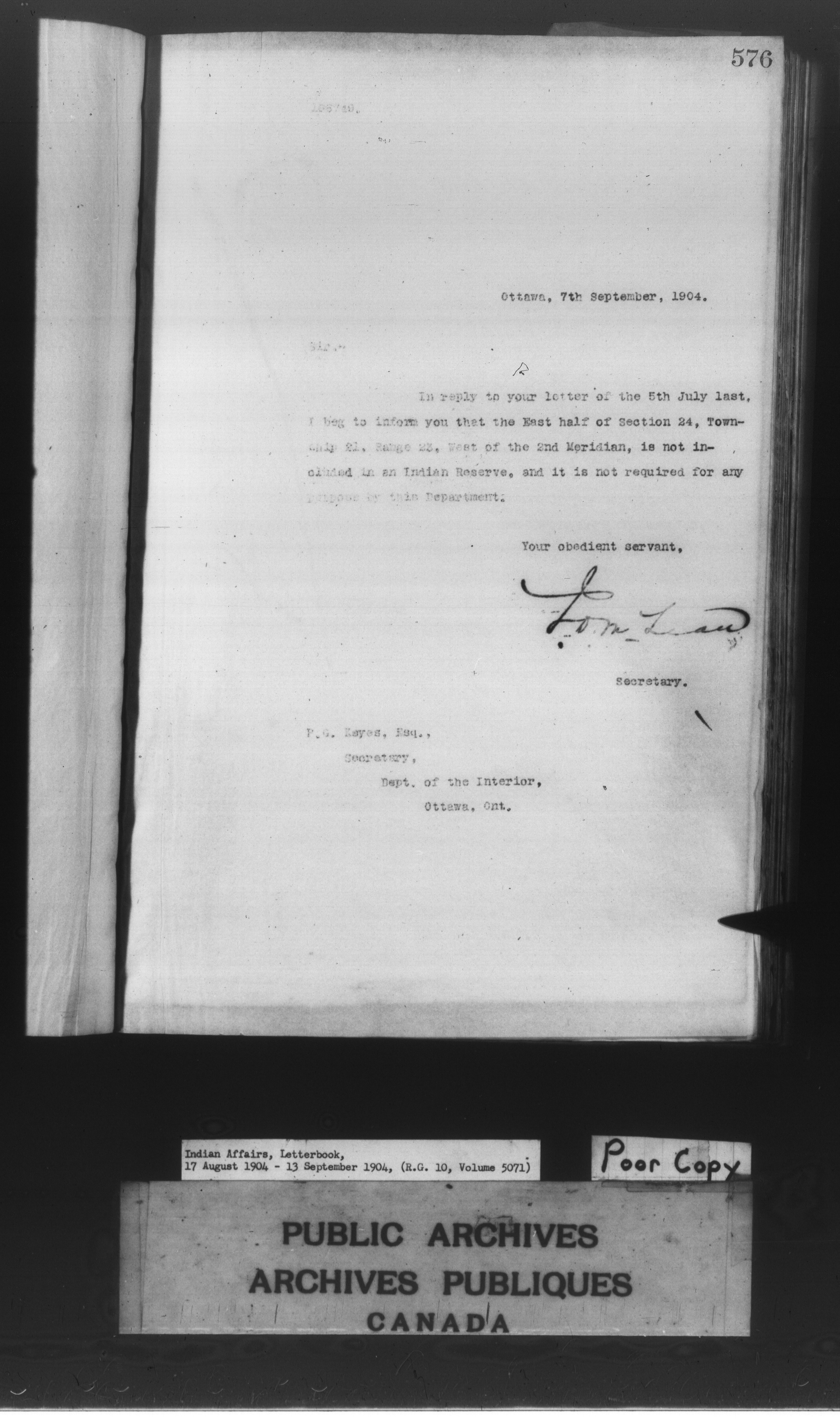 Department of Indian Affairs : Letterbooks of out-going correspondence relating to the administration of Indian Affairs in both eastern and western Canada, 1871-1920 - 8588