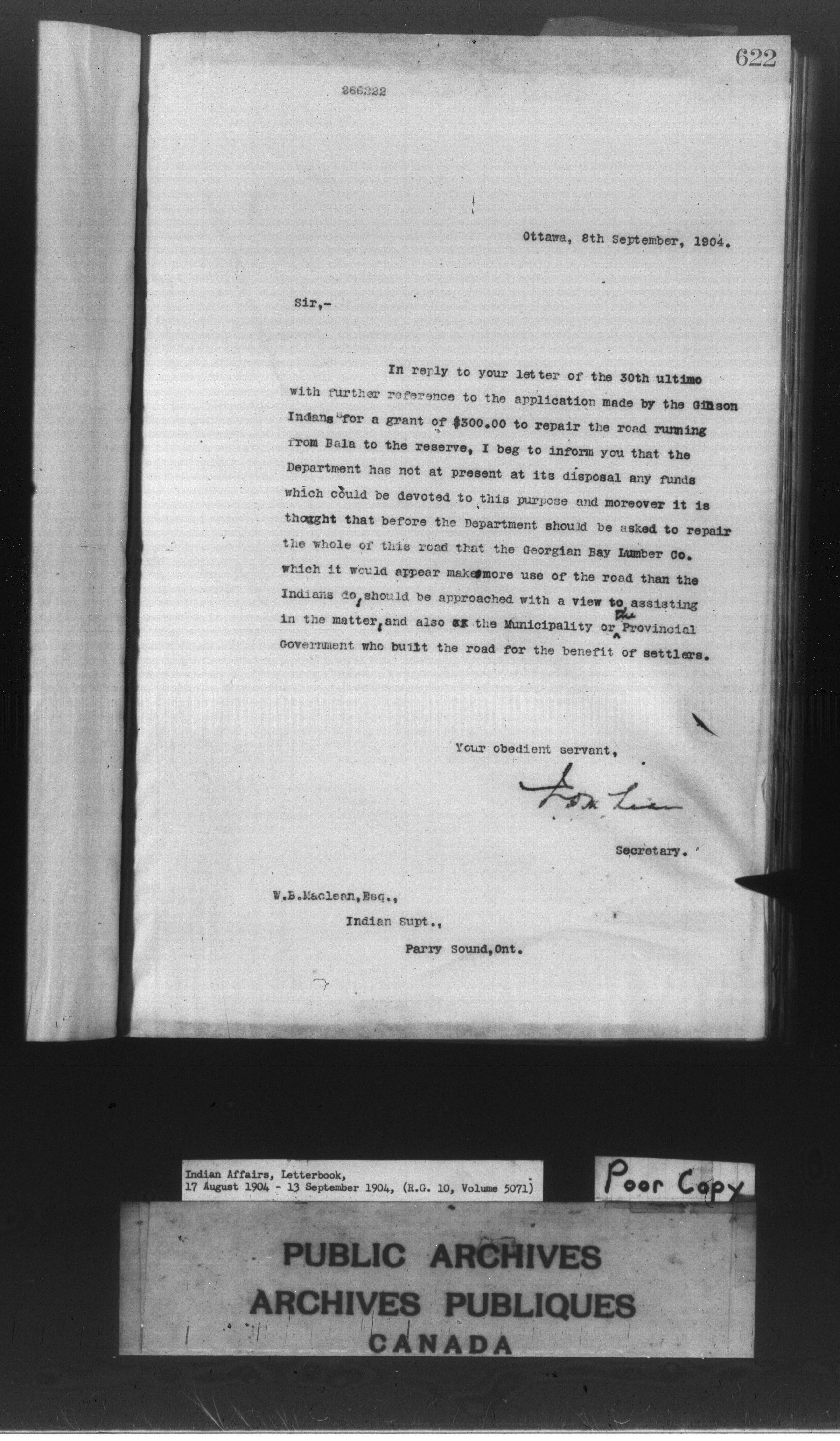 Department of Indian Affairs : Letterbooks of out-going correspondence relating to the administration of Indian Affairs in both eastern and western Canada, 1871-1920 - 8588