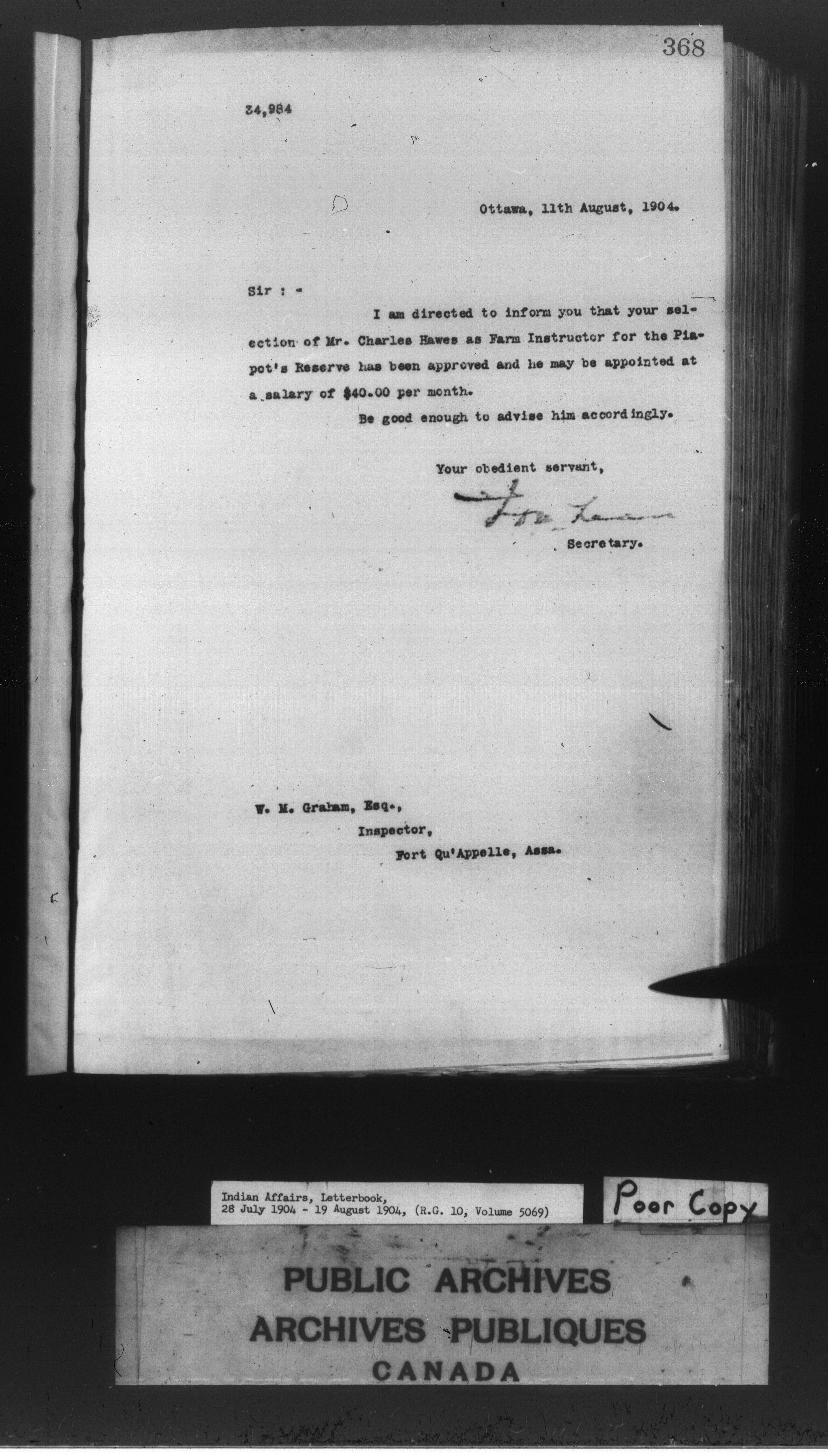 Department of Indian Affairs : Letterbooks of out-going correspondence relating to the administration of Indian Affairs in both eastern and western Canada, 1871-1920 - 8588