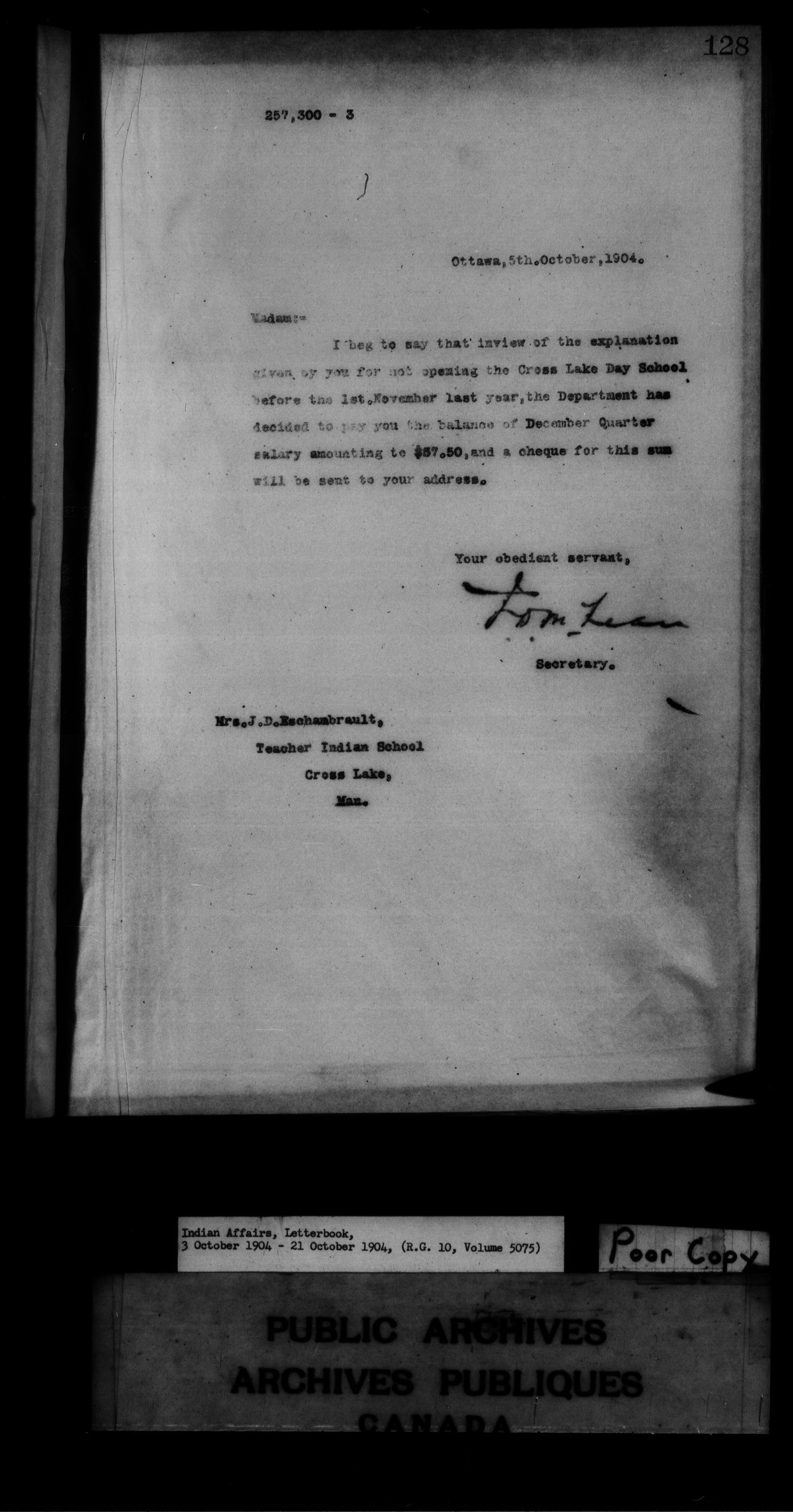 Department of Indian Affairs : Letterbooks of out-going correspondence relating to the administration of Indian Affairs in both eastern and western Canada, 1871-1920 - 8590