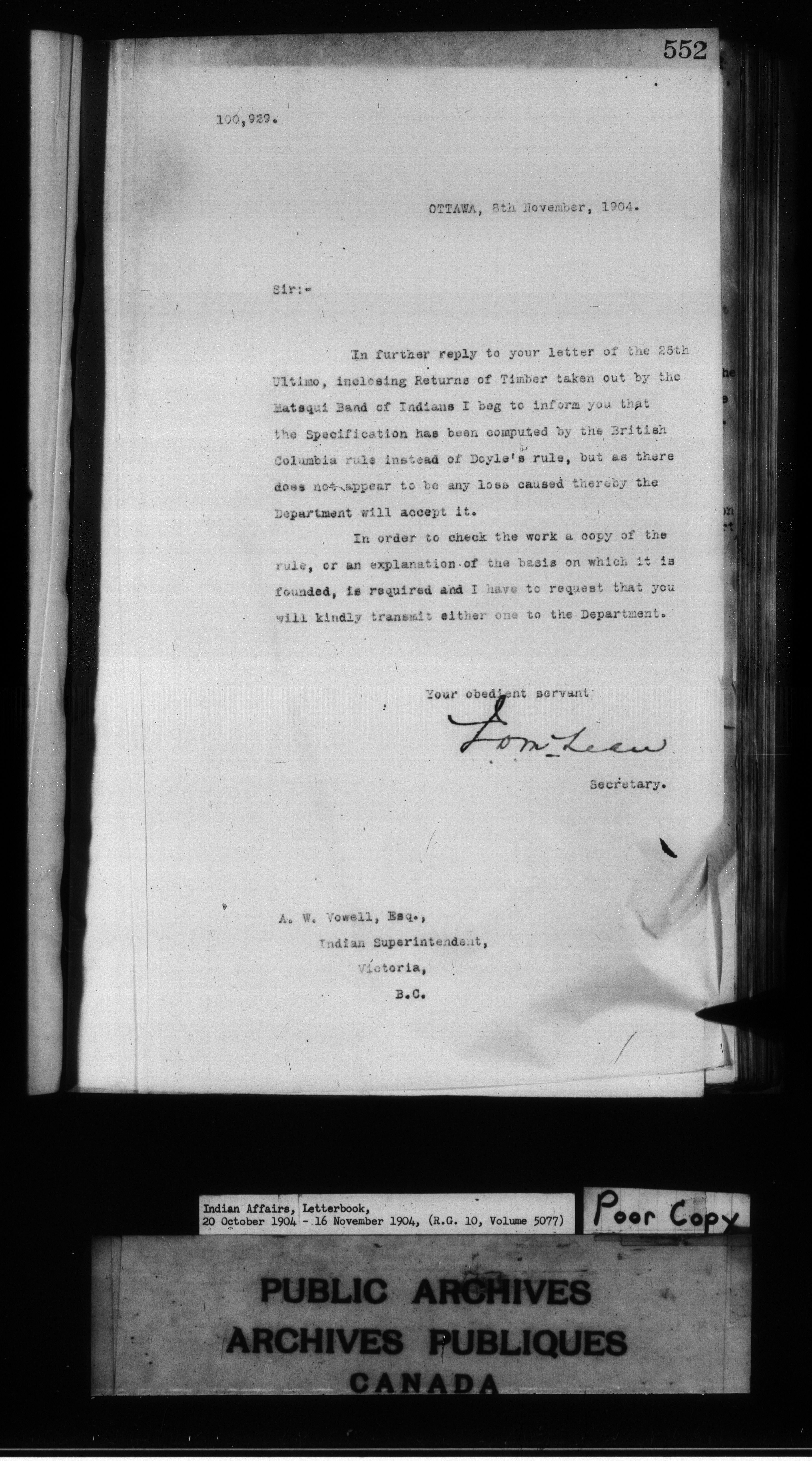 Department of Indian Affairs : Letterbooks of out-going correspondence relating to the administration of Indian Affairs in both eastern and western Canada, 1871-1920 - 8591