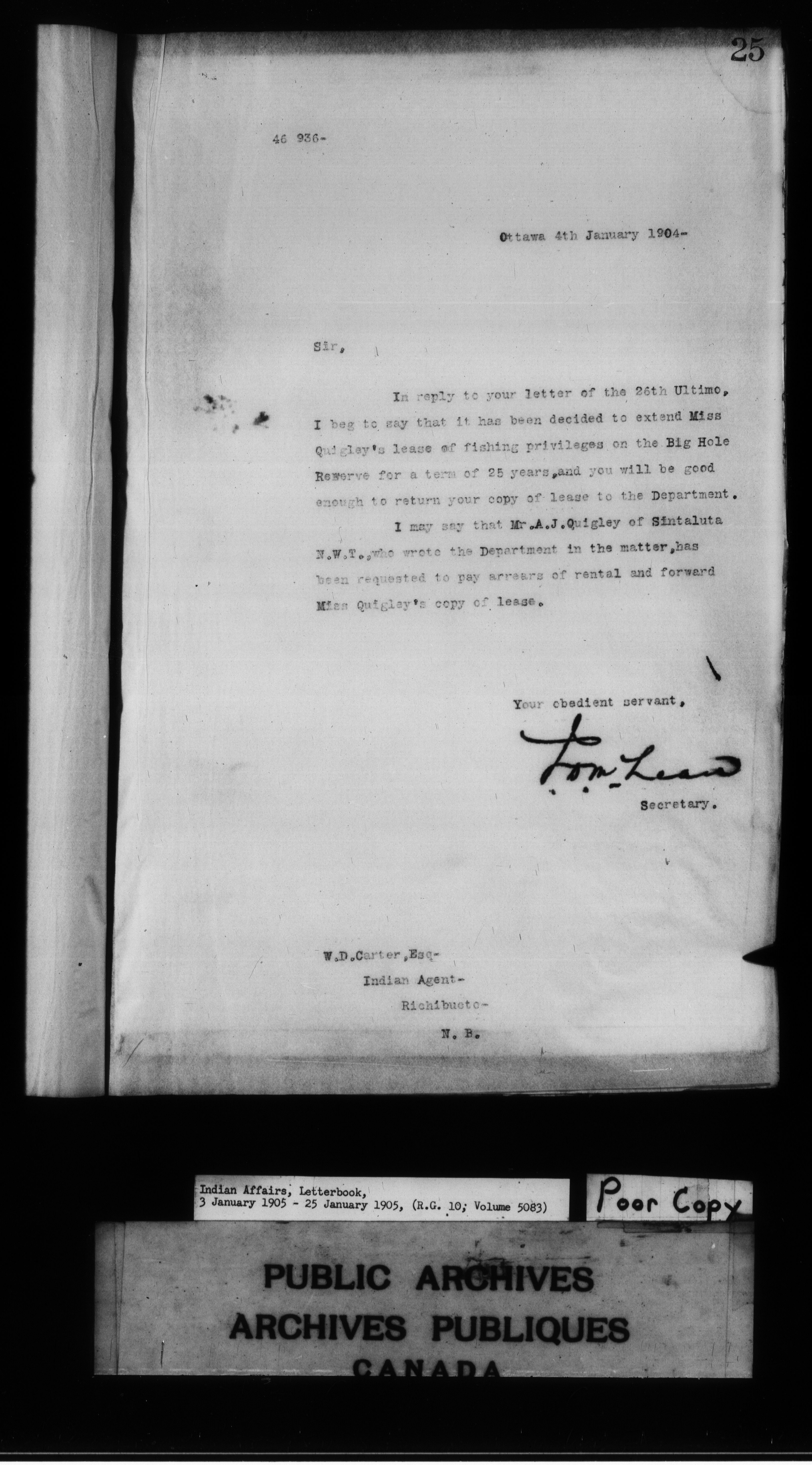 Department of Indian Affairs : Letterbooks of out-going correspondence relating to the administration of Indian Affairs in both eastern and western Canada, 1871-1920 - 8593