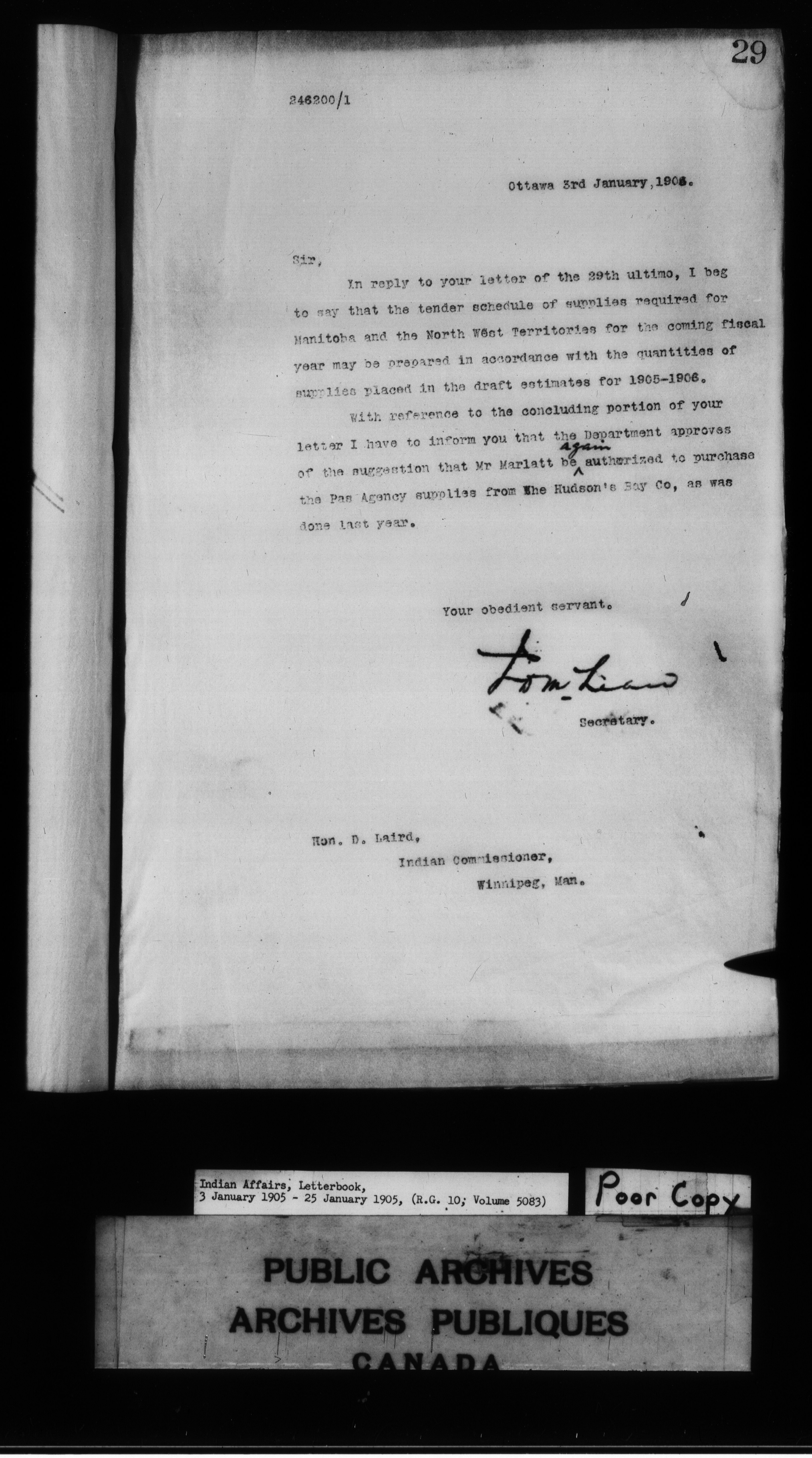 Department of Indian Affairs : Letterbooks of out-going correspondence relating to the administration of Indian Affairs in both eastern and western Canada, 1871-1920 - 8593
