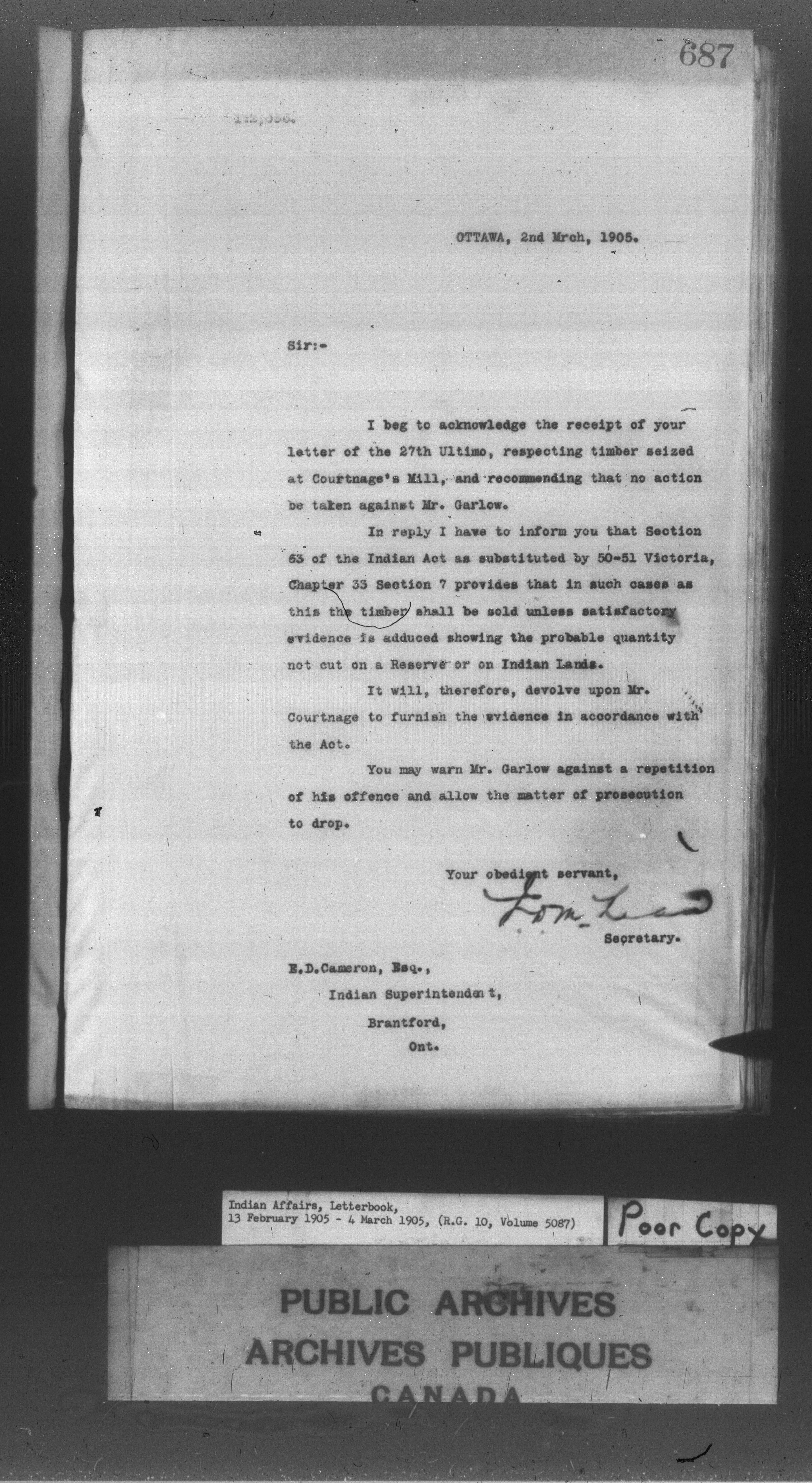 Department of Indian Affairs : Departmental letterbooks : C-8595