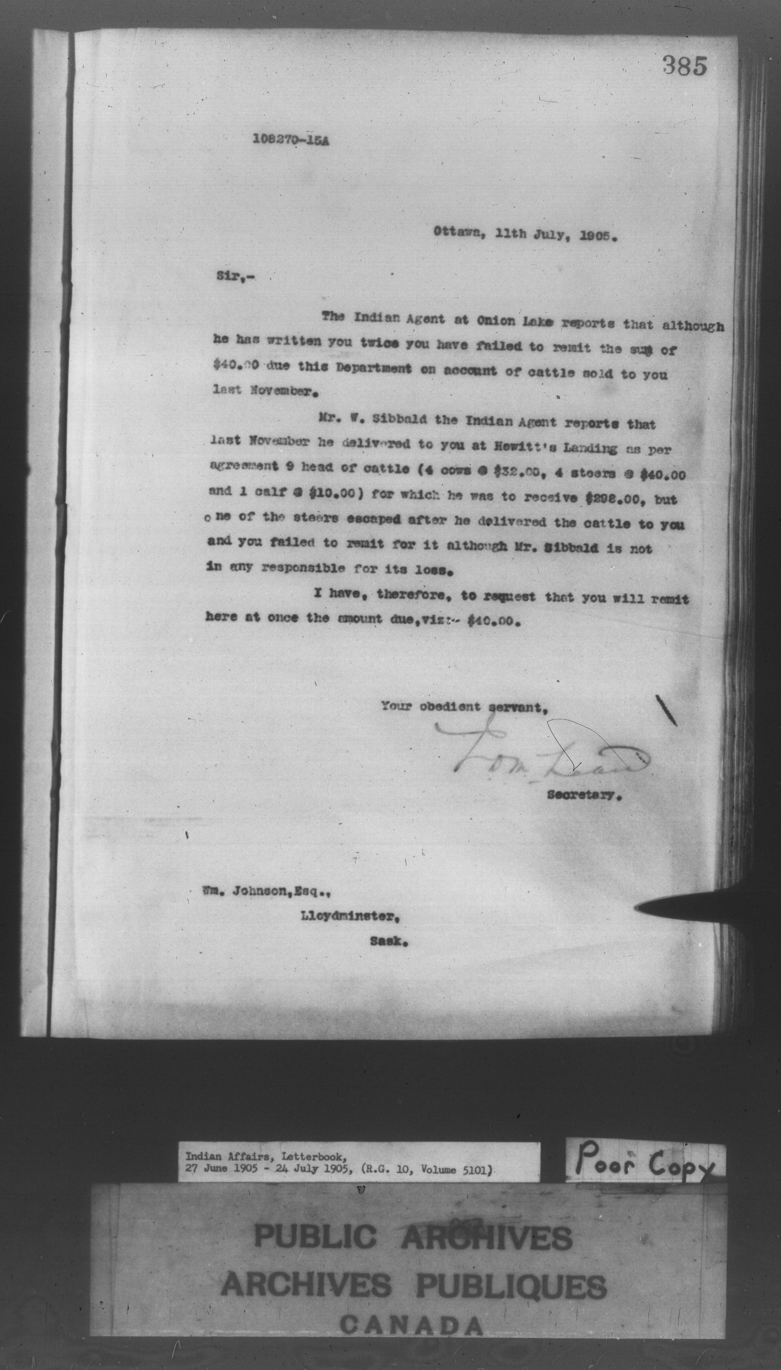 Department of Indian Affairs : Letterbooks of out-going correspondence relating to the administration of Indian Affairs in both eastern and western Canada, 1871-1920 - 8599
