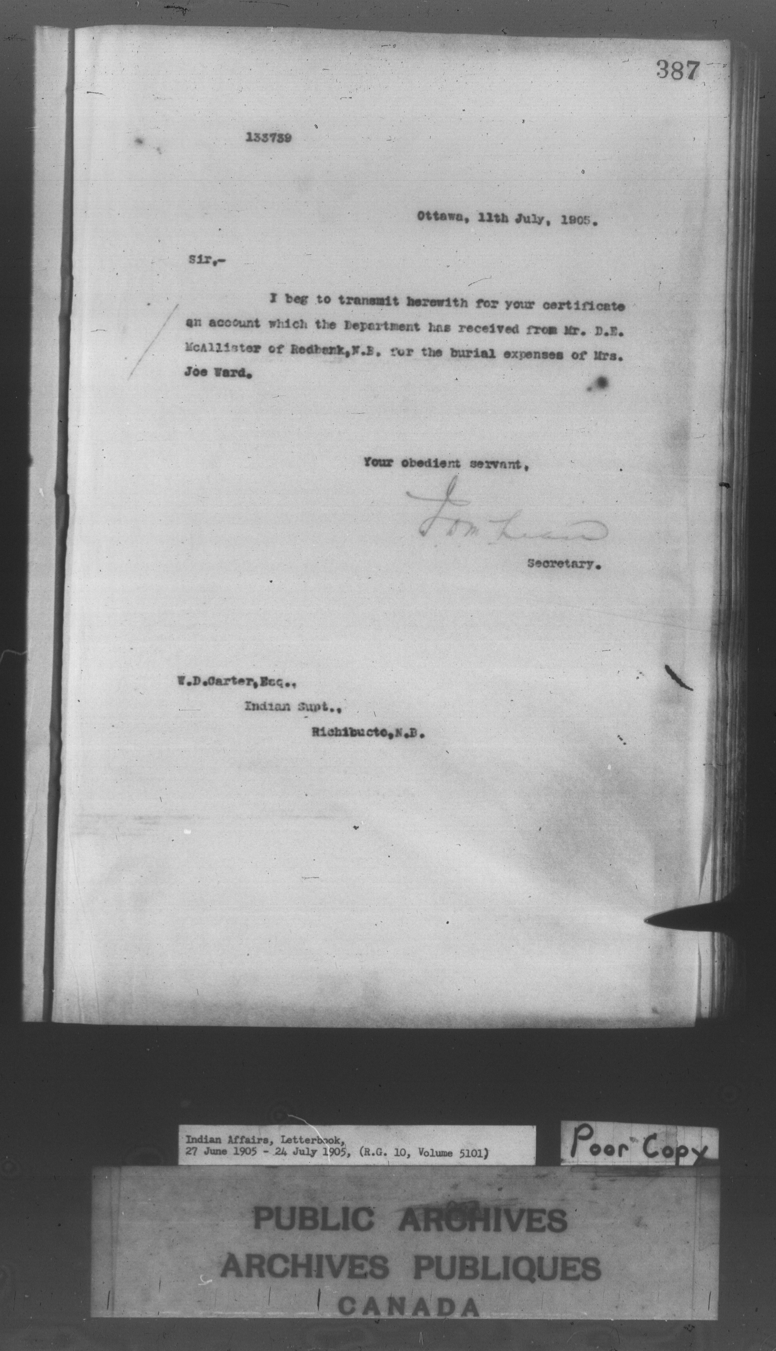 Department of Indian Affairs : Letterbooks of out-going correspondence relating to the administration of Indian Affairs in both eastern and western Canada, 1871-1920 - 8599