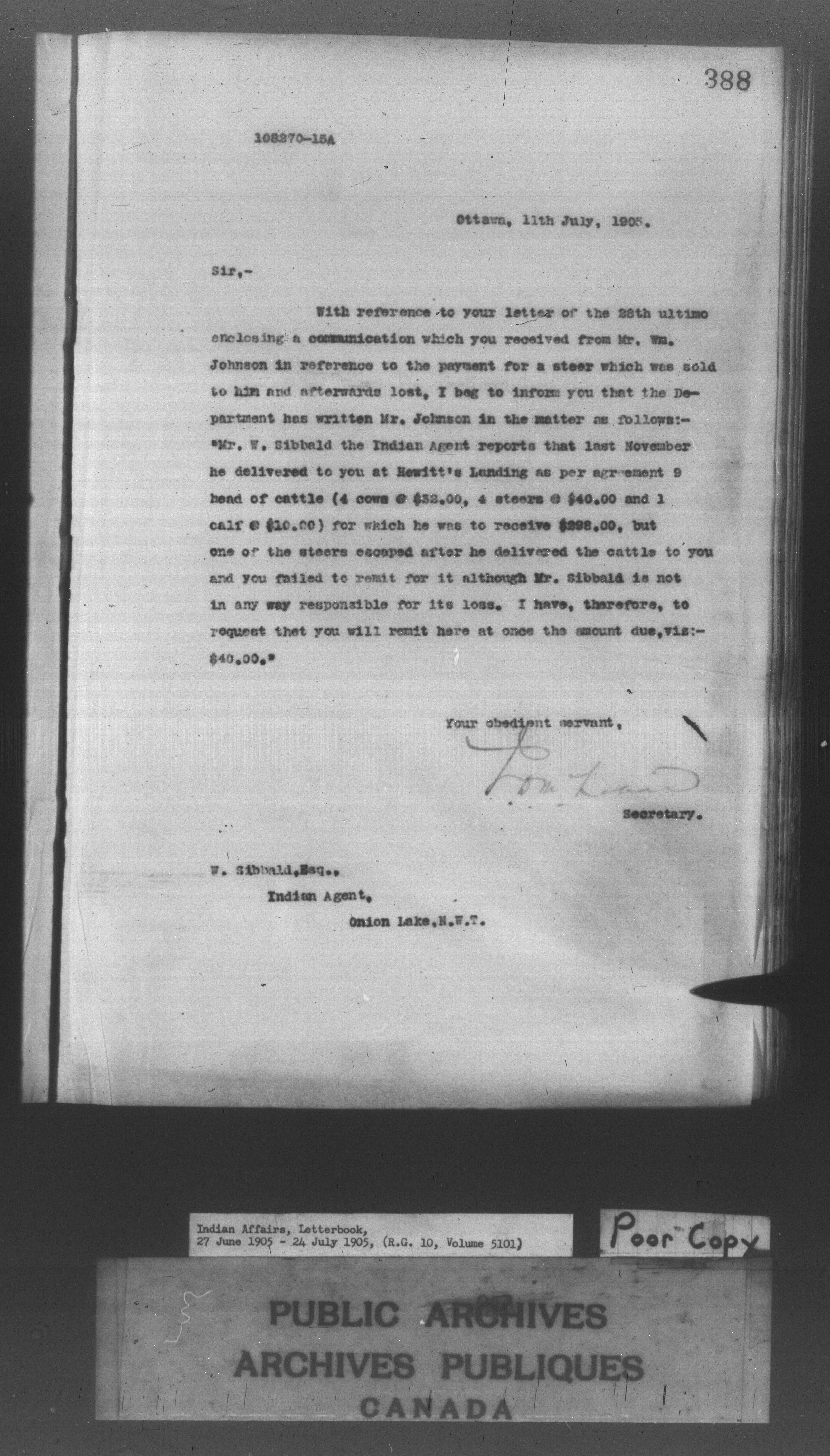 Department of Indian Affairs : Letterbooks of out-going correspondence relating to the administration of Indian Affairs in both eastern and western Canada, 1871-1920 - 8599