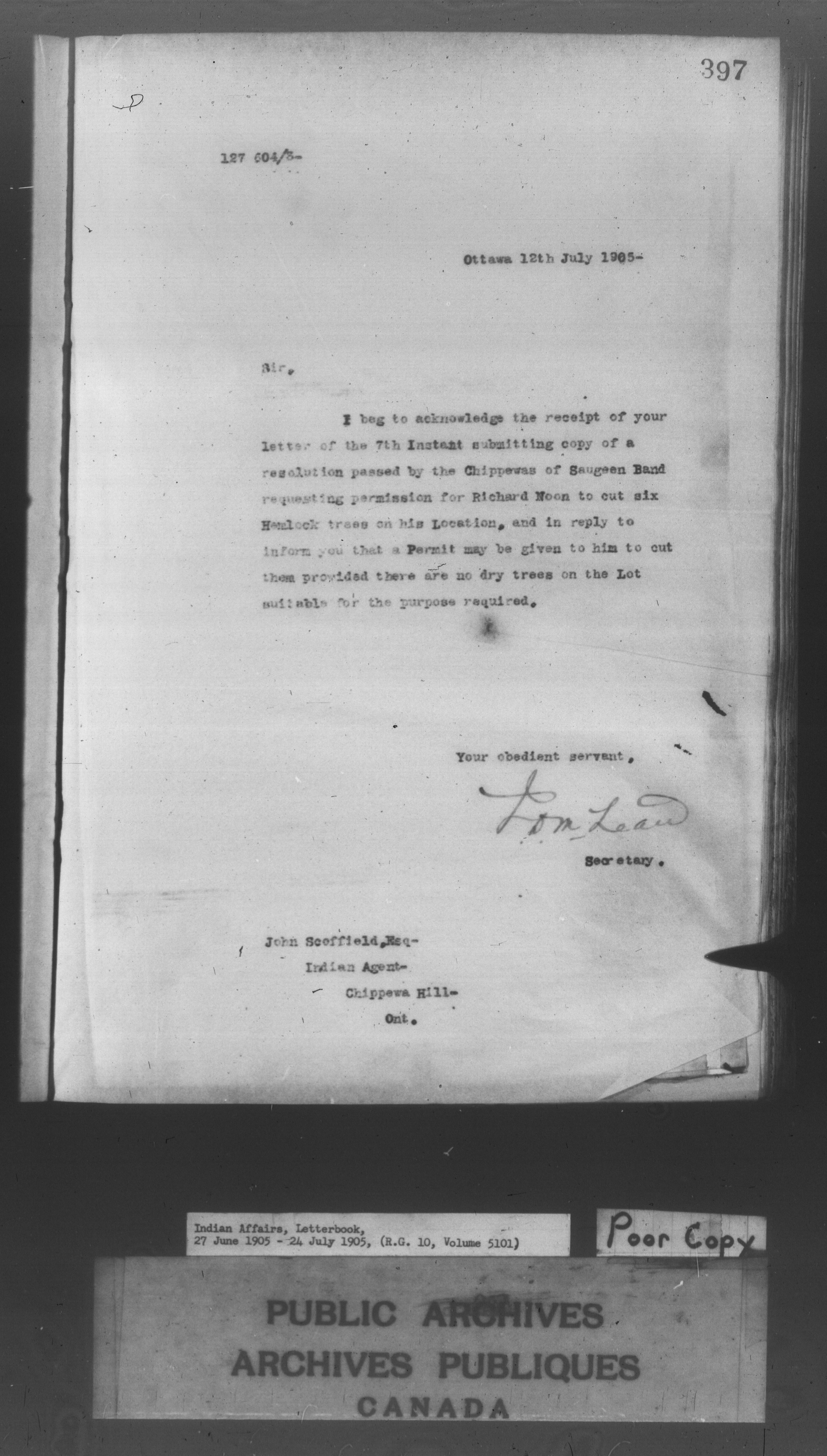 Department of Indian Affairs : Letterbooks of out-going correspondence relating to the administration of Indian Affairs in both eastern and western Canada, 1871-1920 - 8599