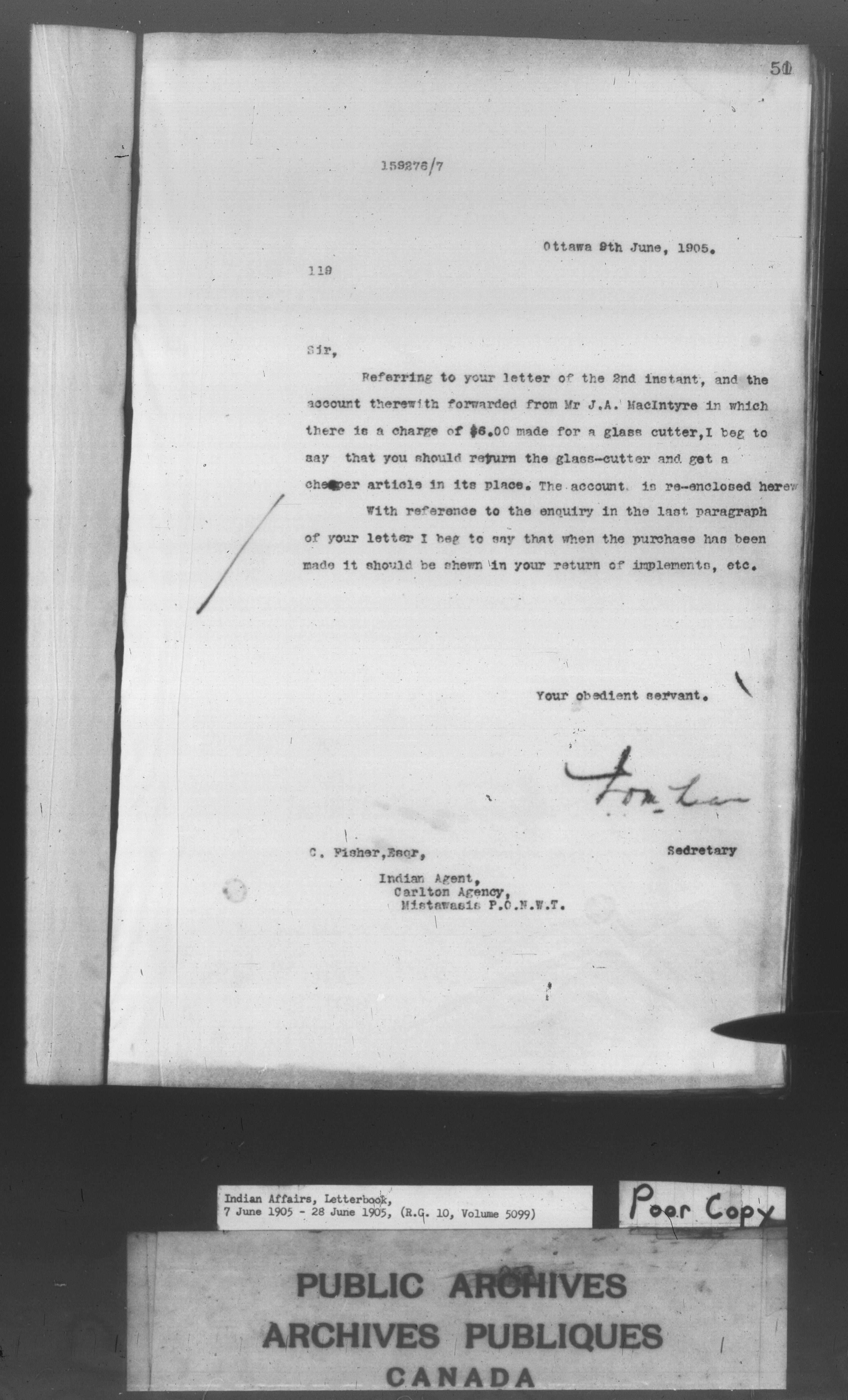 Department of Indian Affairs : Letterbooks of out-going correspondence relating to the administration of Indian Affairs in both eastern and western Canada, 1871-1920 - 8599