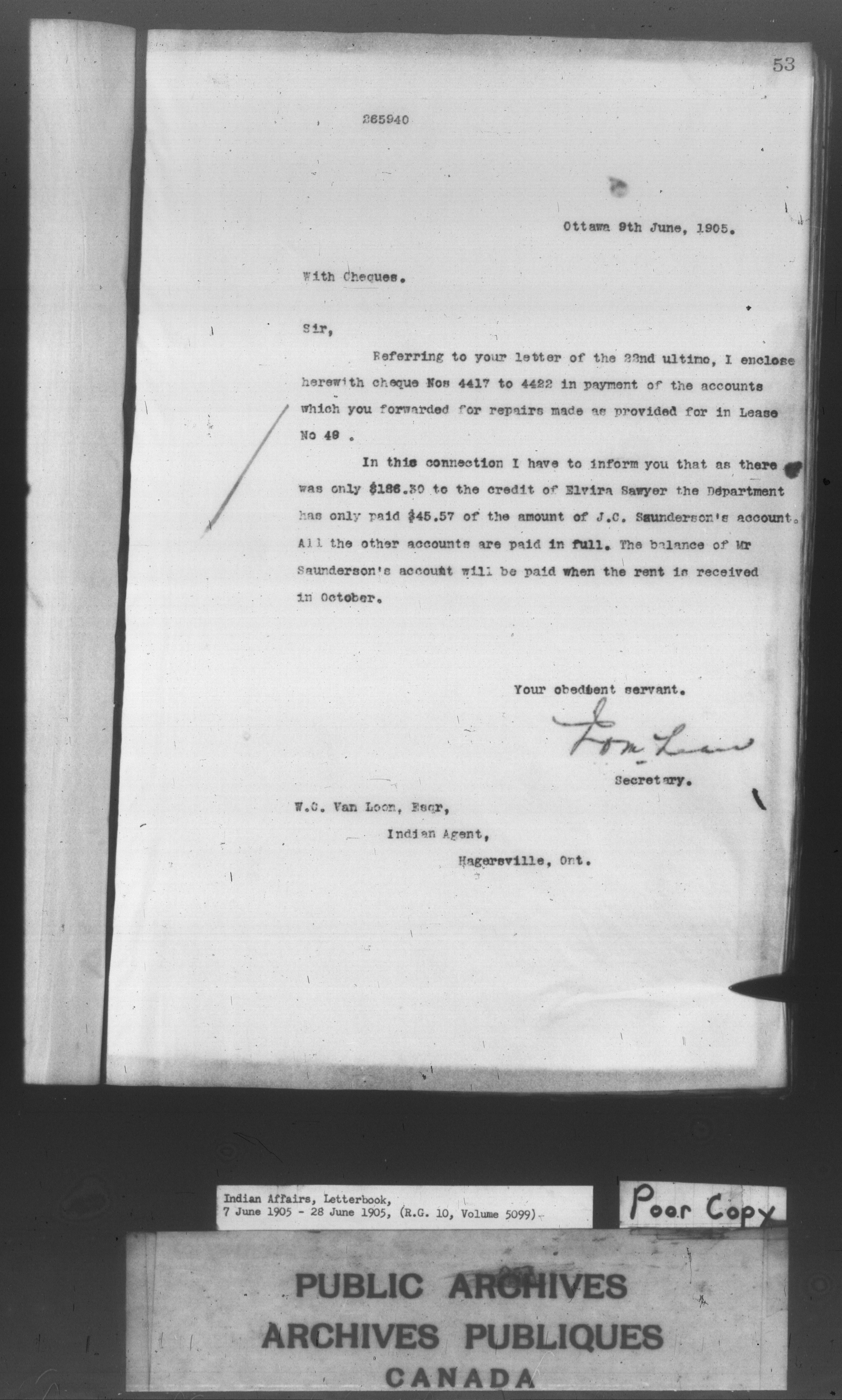 Department of Indian Affairs : Letterbooks of out-going correspondence relating to the administration of Indian Affairs in both eastern and western Canada, 1871-1920 - 8599