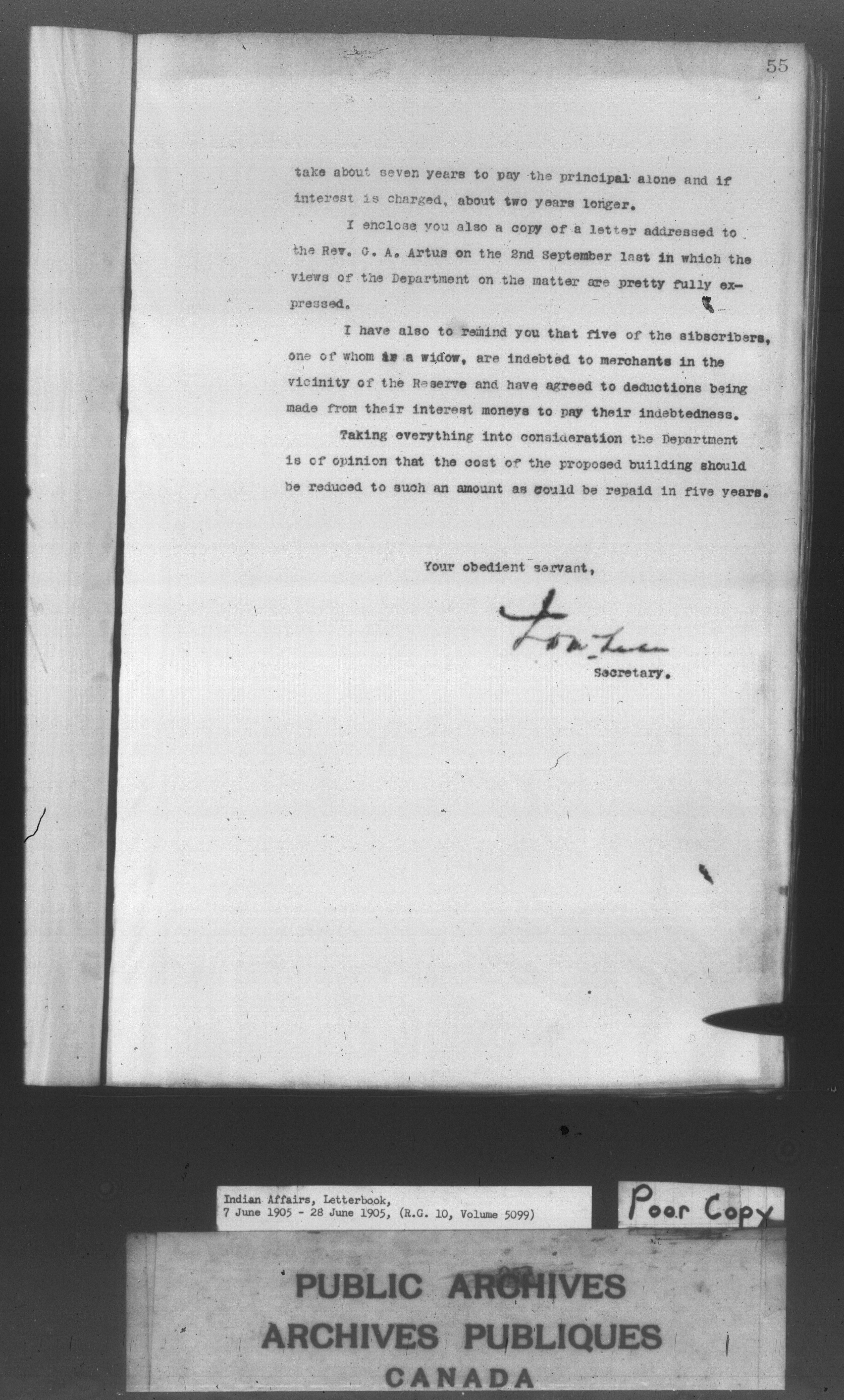 Department of Indian Affairs : Letterbooks of out-going correspondence relating to the administration of Indian Affairs in both eastern and western Canada, 1871-1920 - 8599