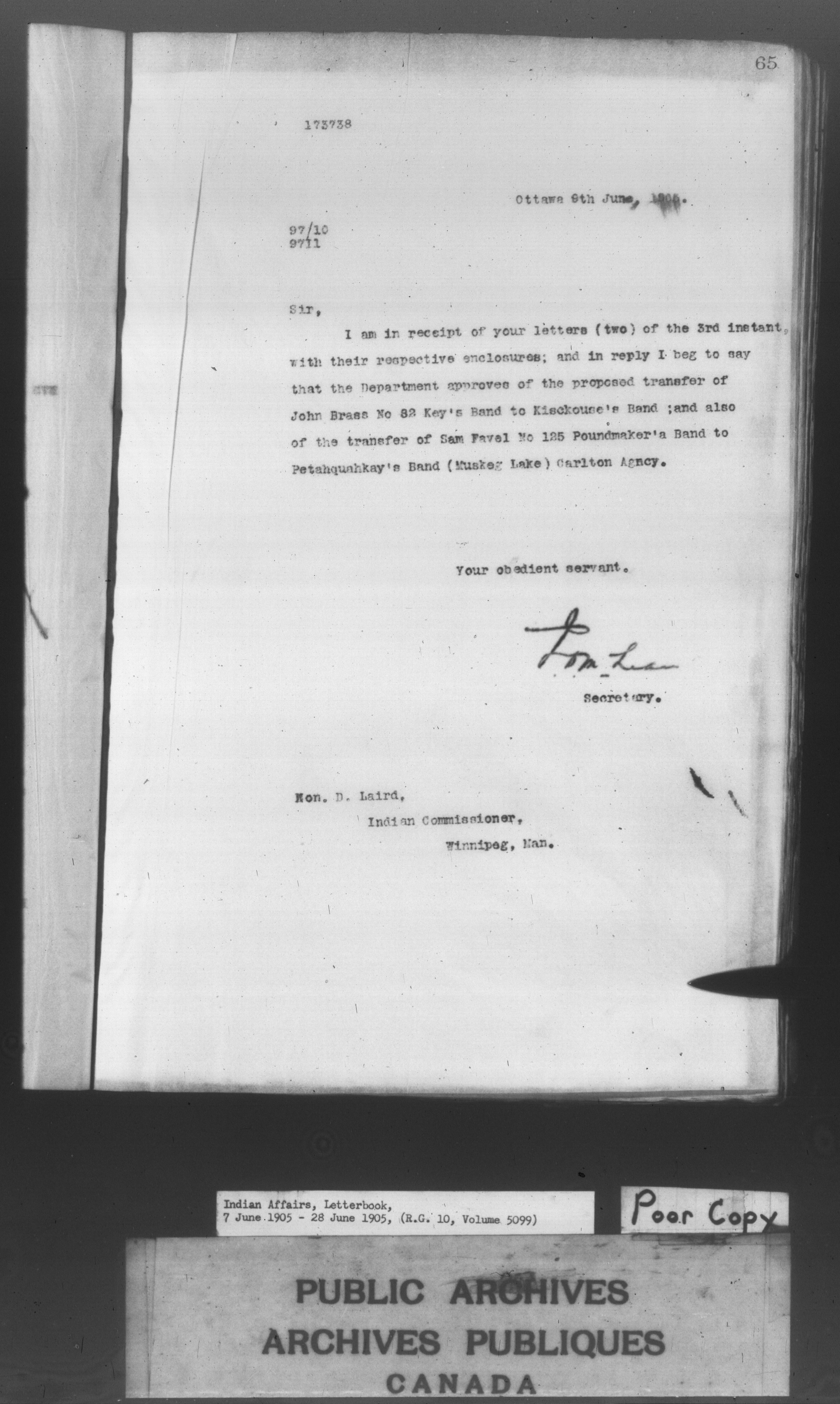 Department of Indian Affairs : Letterbooks of out-going correspondence relating to the administration of Indian Affairs in both eastern and western Canada, 1871-1920 - 8599