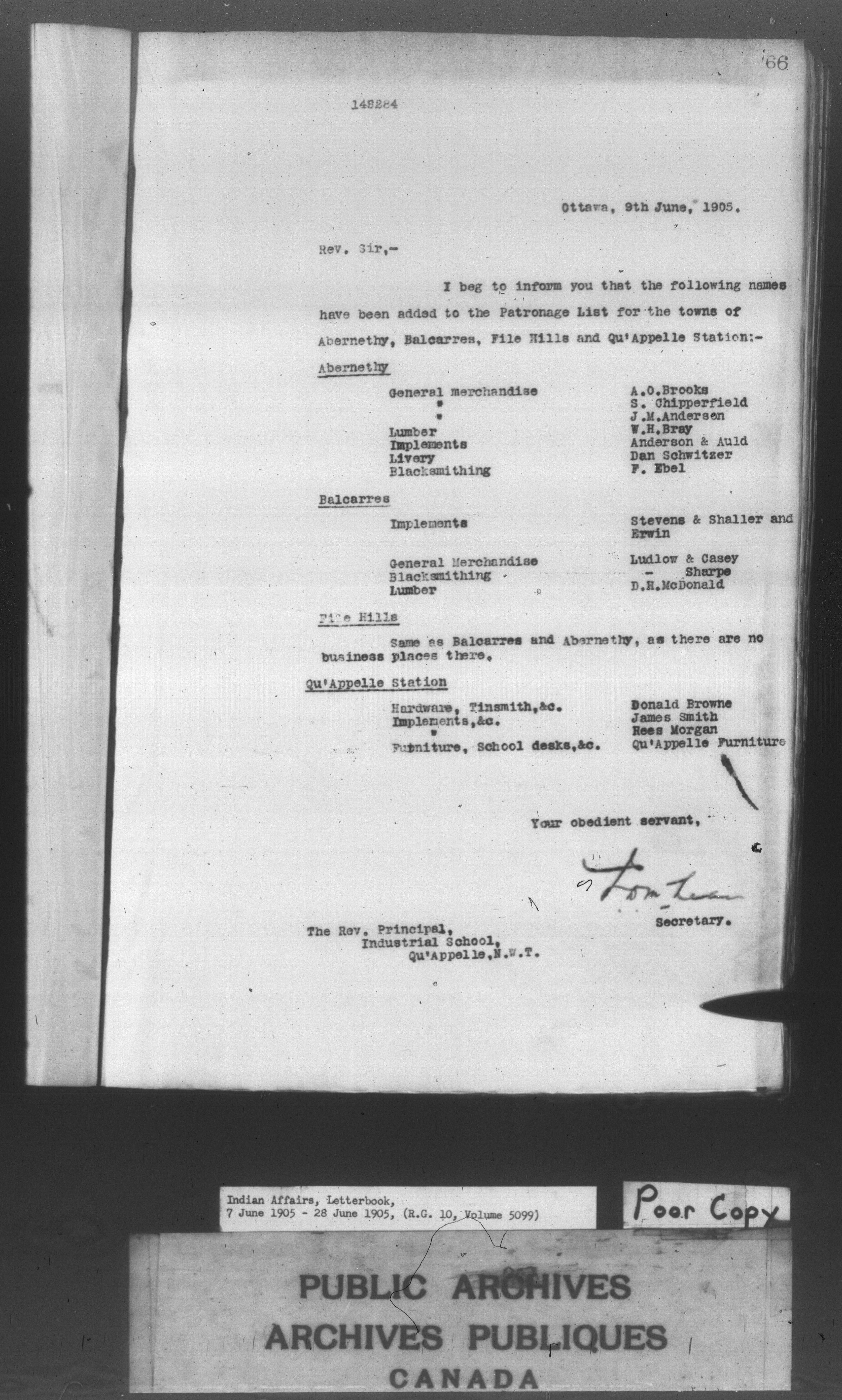 Department of Indian Affairs : Letterbooks of out-going correspondence relating to the administration of Indian Affairs in both eastern and western Canada, 1871-1920 - 8599