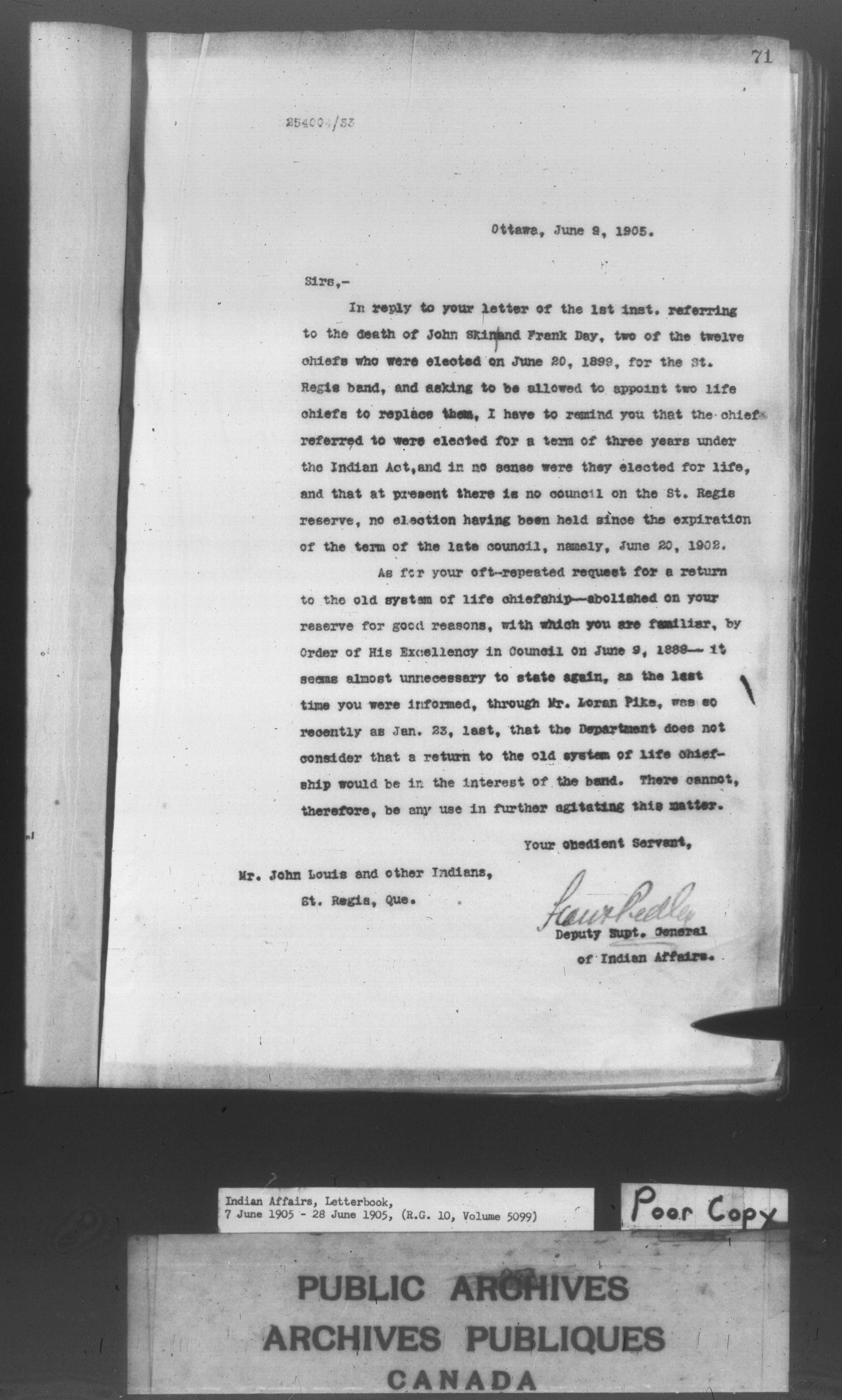 Department of Indian Affairs : Letterbooks of out-going correspondence relating to the administration of Indian Affairs in both eastern and western Canada, 1871-1920 - 8599