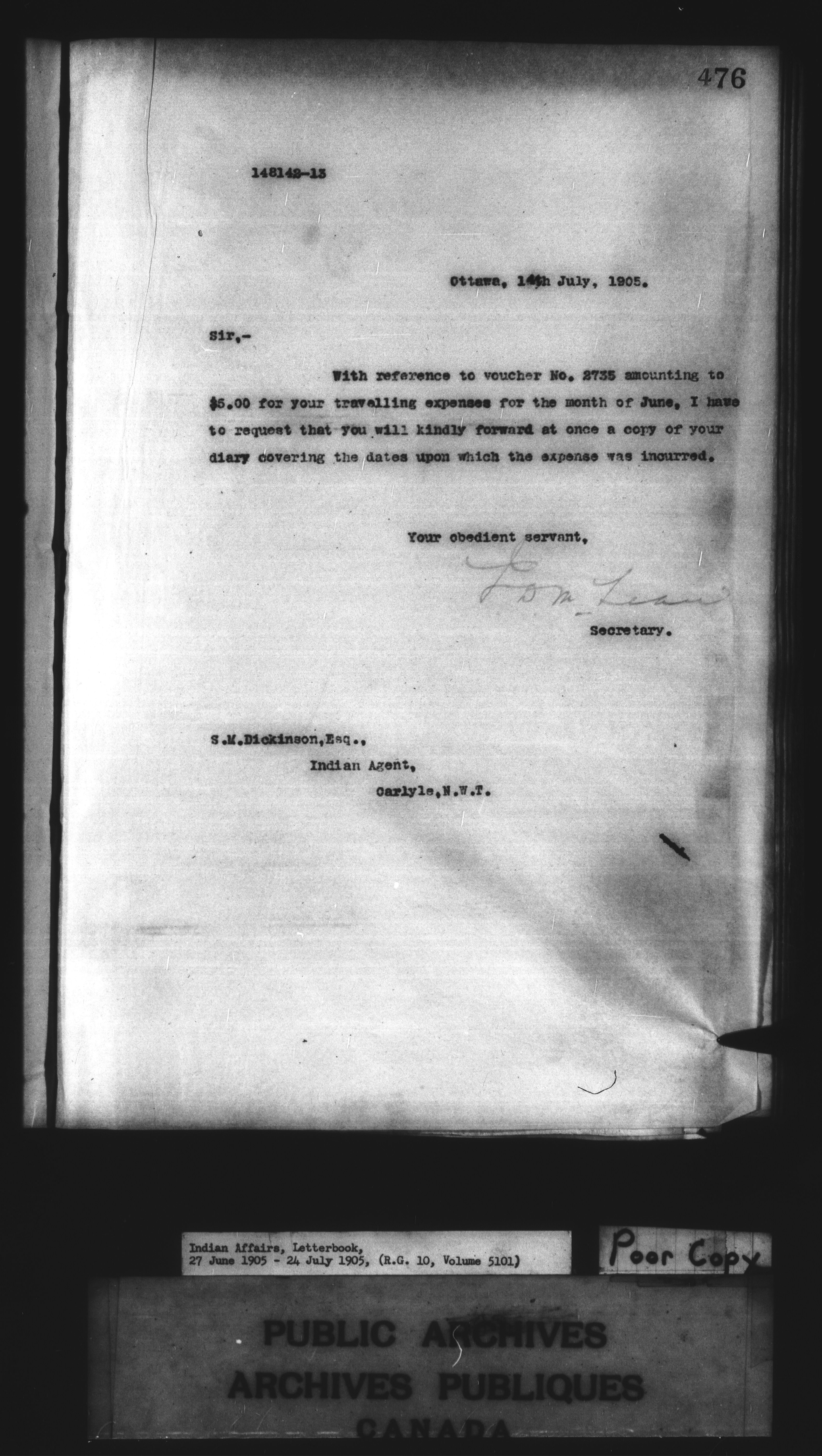 Department of Indian Affairs : Letterbooks of out-going correspondence relating to the administration of Indian Affairs in both eastern and western Canada, 1871-1920 - 8600
