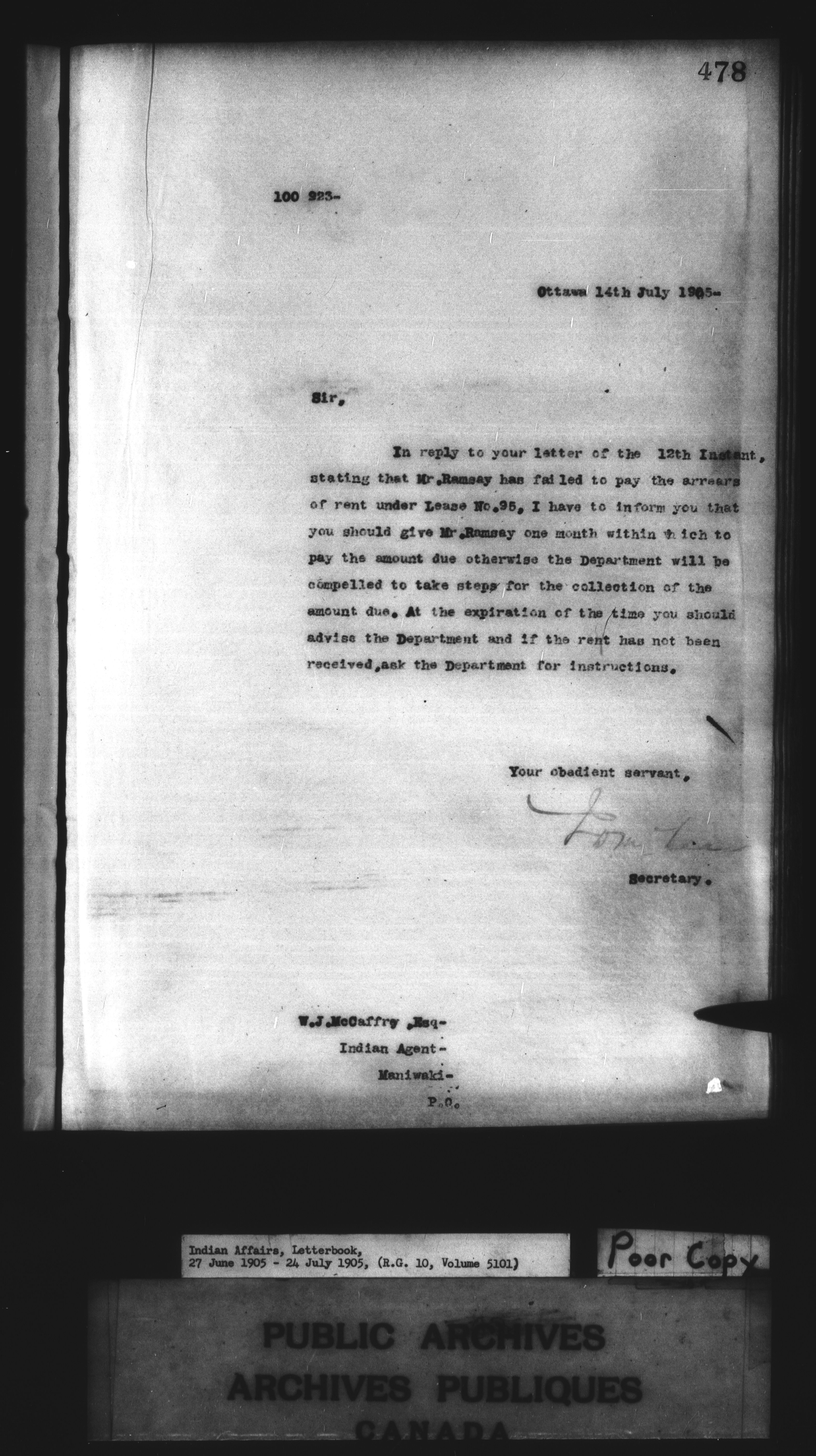 Department of Indian Affairs : Letterbooks of out-going correspondence relating to the administration of Indian Affairs in both eastern and western Canada, 1871-1920 - 8600
