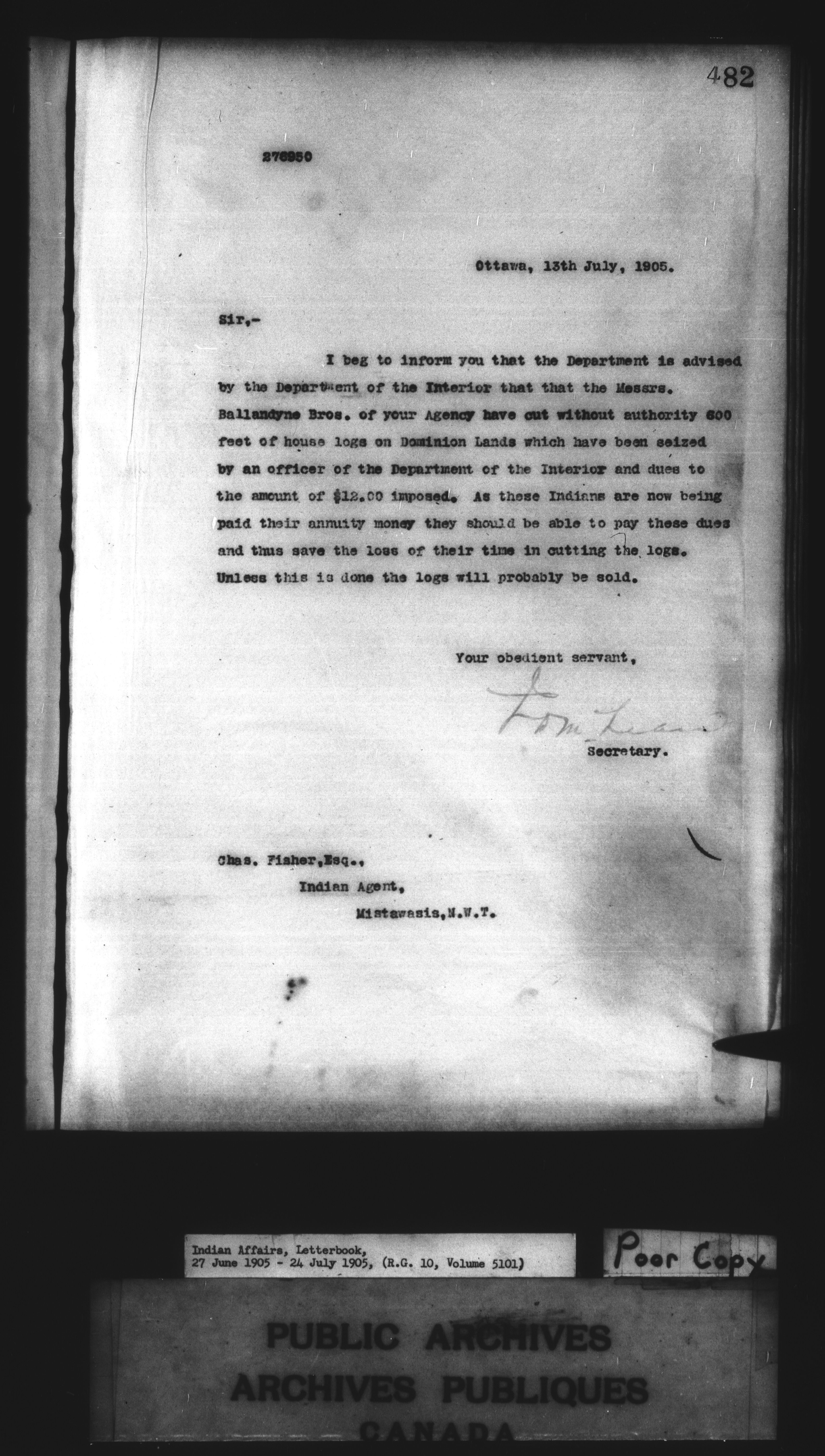 Department of Indian Affairs : Letterbooks of out-going correspondence relating to the administration of Indian Affairs in both eastern and western Canada, 1871-1920 - 8600