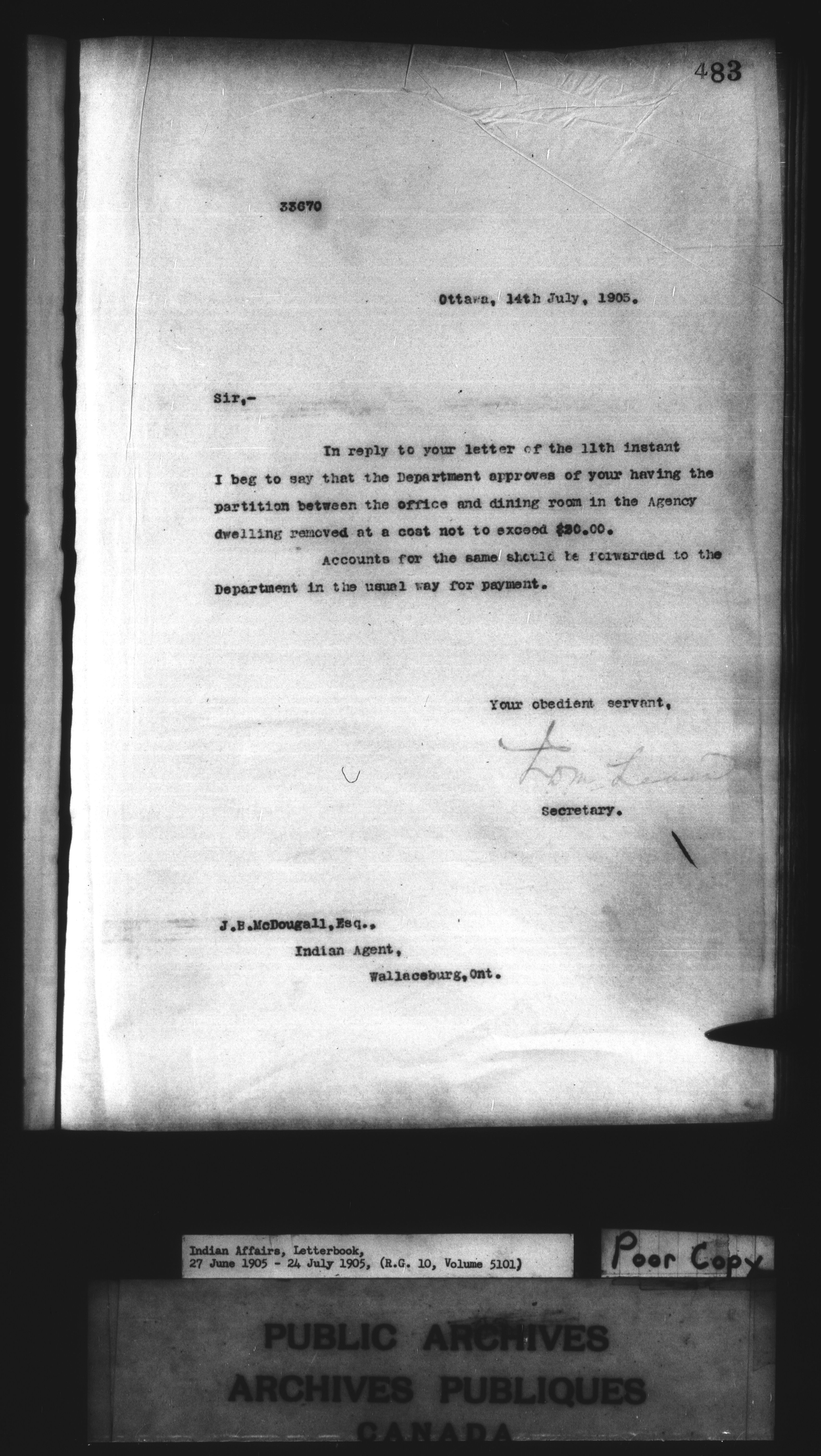 Department of Indian Affairs : Letterbooks of out-going correspondence relating to the administration of Indian Affairs in both eastern and western Canada, 1871-1920 - 8600