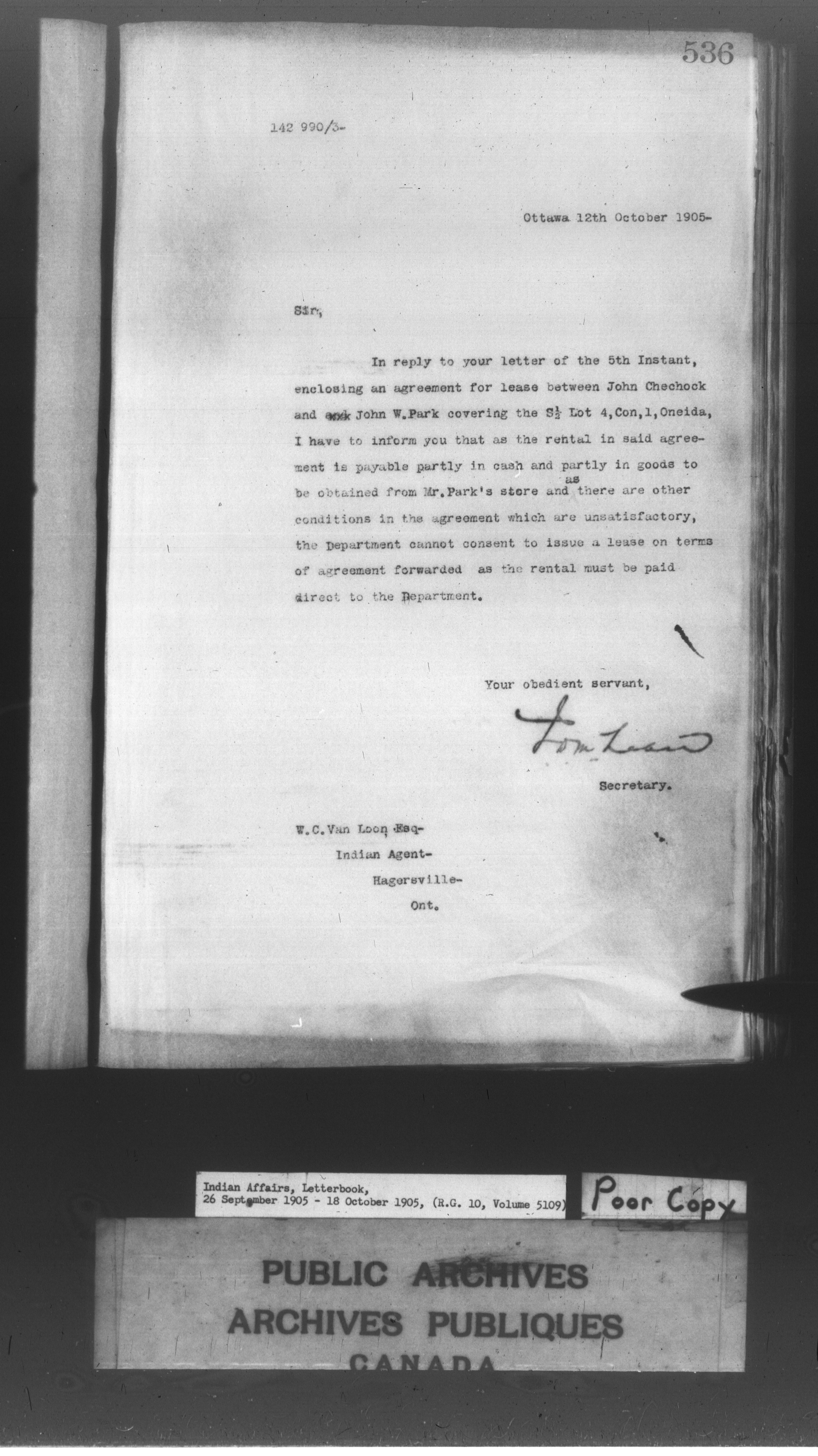 Department of Indian Affairs : Letterbooks of out-going correspondence relating to the administration of Indian Affairs in both eastern and western Canada, 1871-1920 - 8602