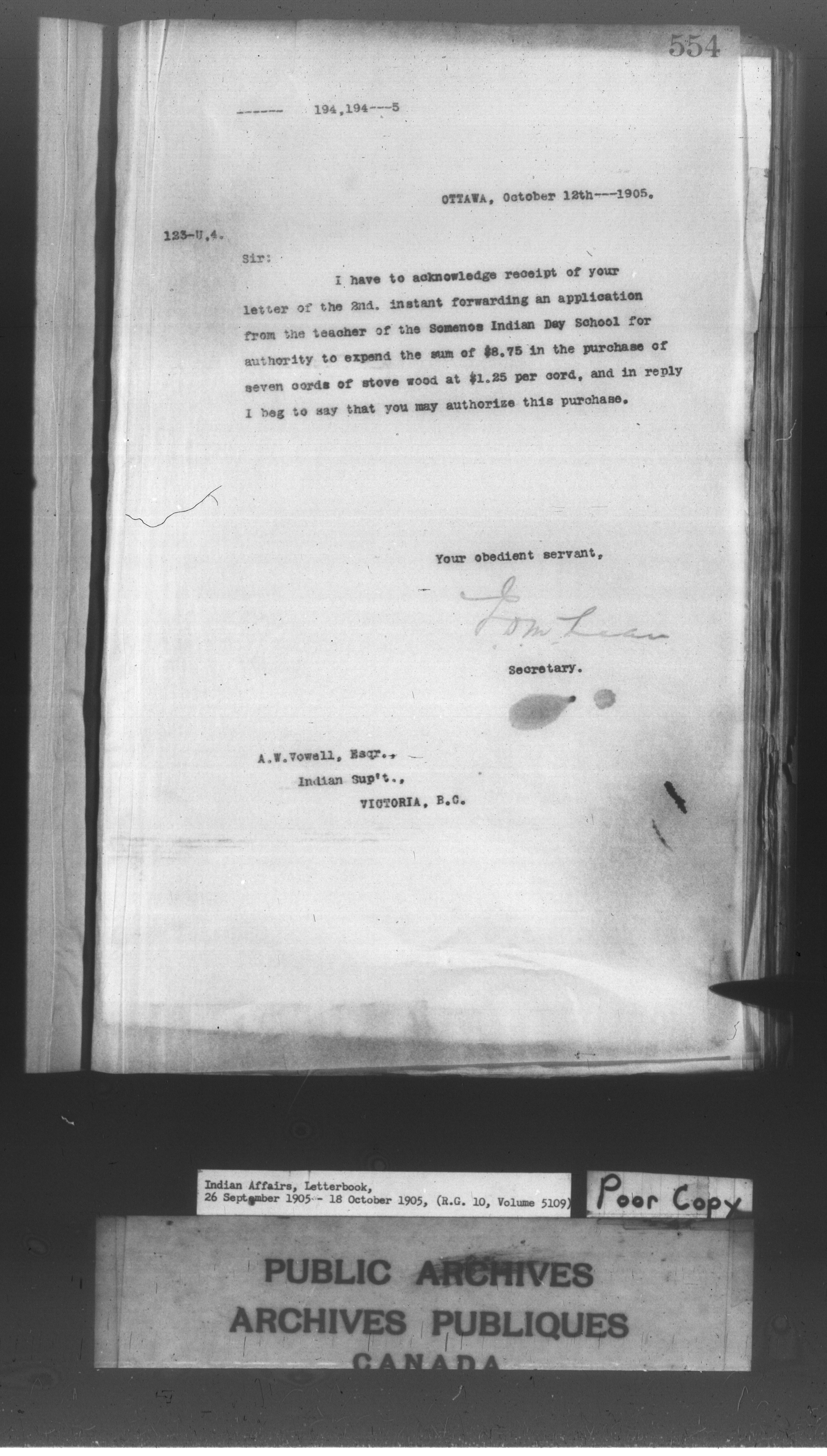 Department of Indian Affairs : Letterbooks of out-going correspondence relating to the administration of Indian Affairs in both eastern and western Canada, 1871-1920 - 8602